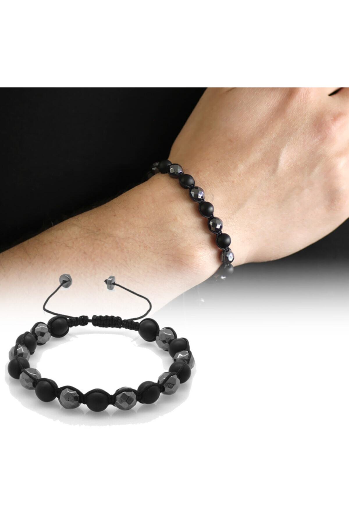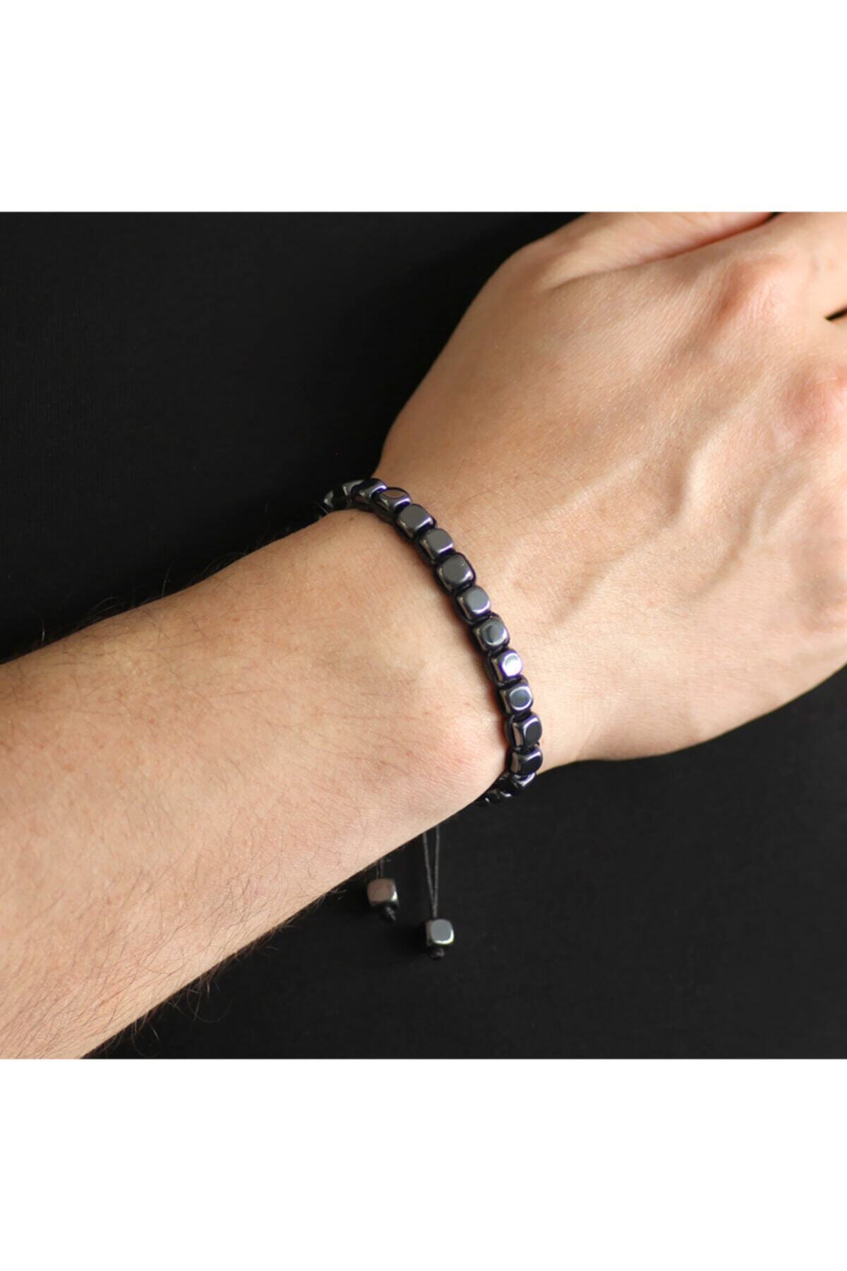 Makrome Örgülü Kapsül Kesim Hematit Doğaltaş Erkek Bileklik Makrome Örgülü Kapsül Kesim Hematit Doğaltaş Erkek Bileklik 104001010 تک سایز
