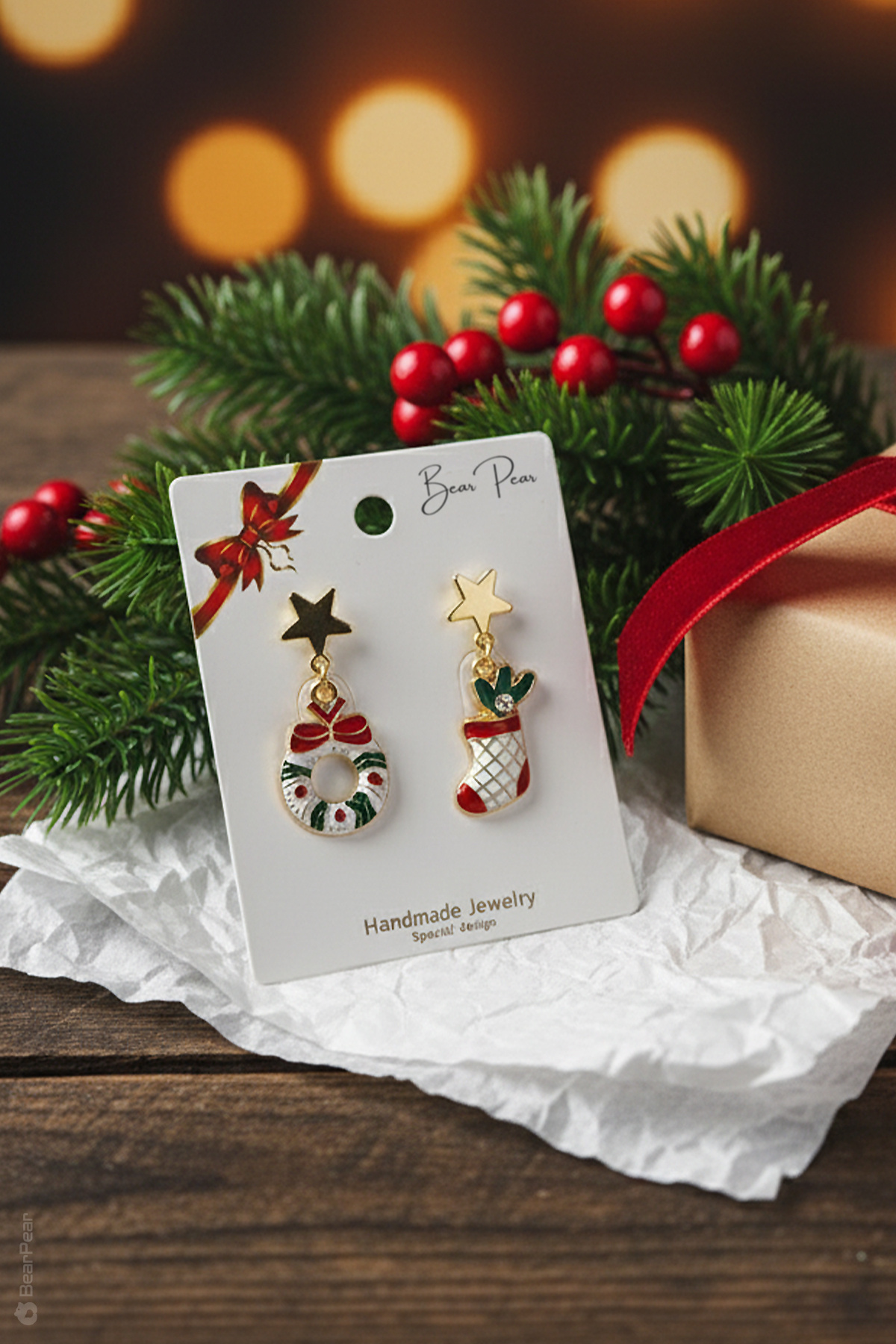 2'li Küpe Yılbaşı Konseptli Asimetrik Küpe Serisi 2'li Küpe Yılbaşı Konseptli Asimetrik Küpe Serisi BP26nye تک سایز
