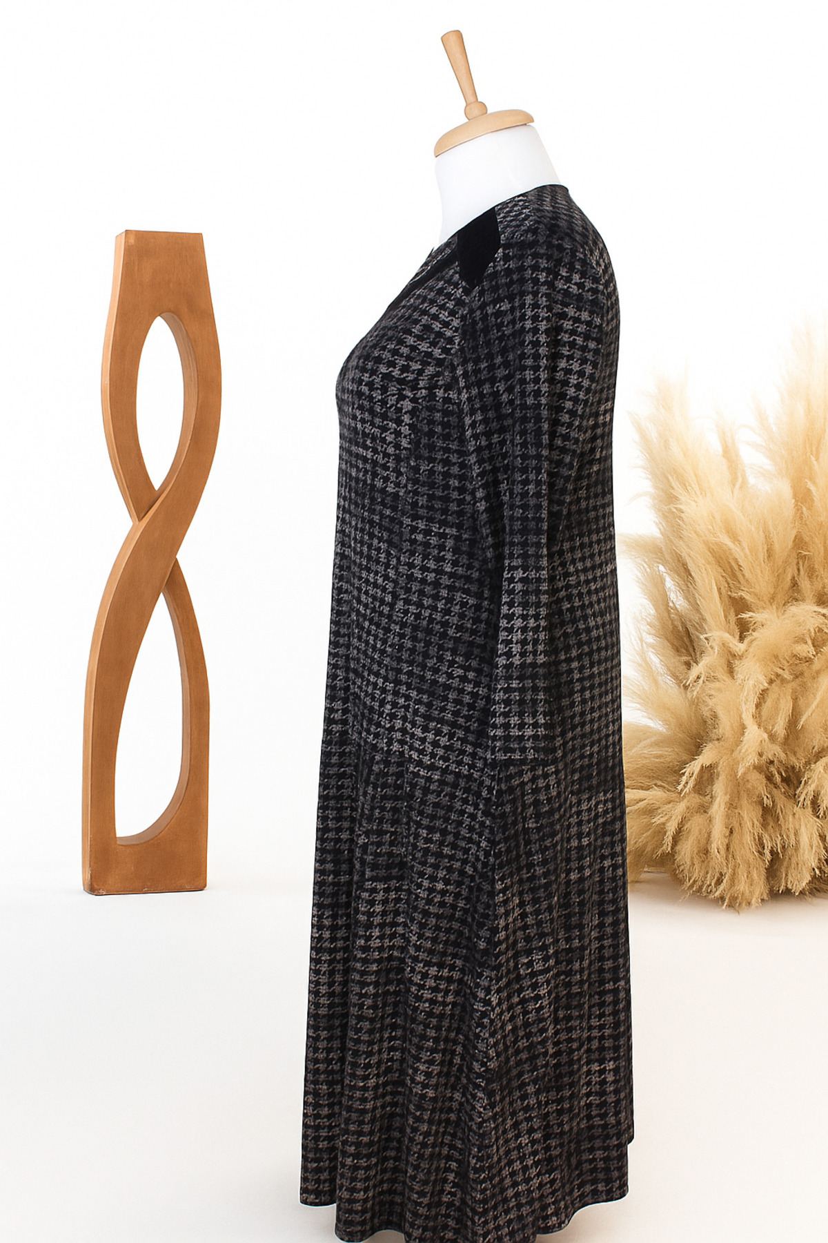 Kadın Kışlık Kazayağı desen Büyük Beden Siyah Anne Elbise Kadın Kışlık Kazayağı desen Büyük Beden Siyah Anne Elbise 4200000603206 52-54