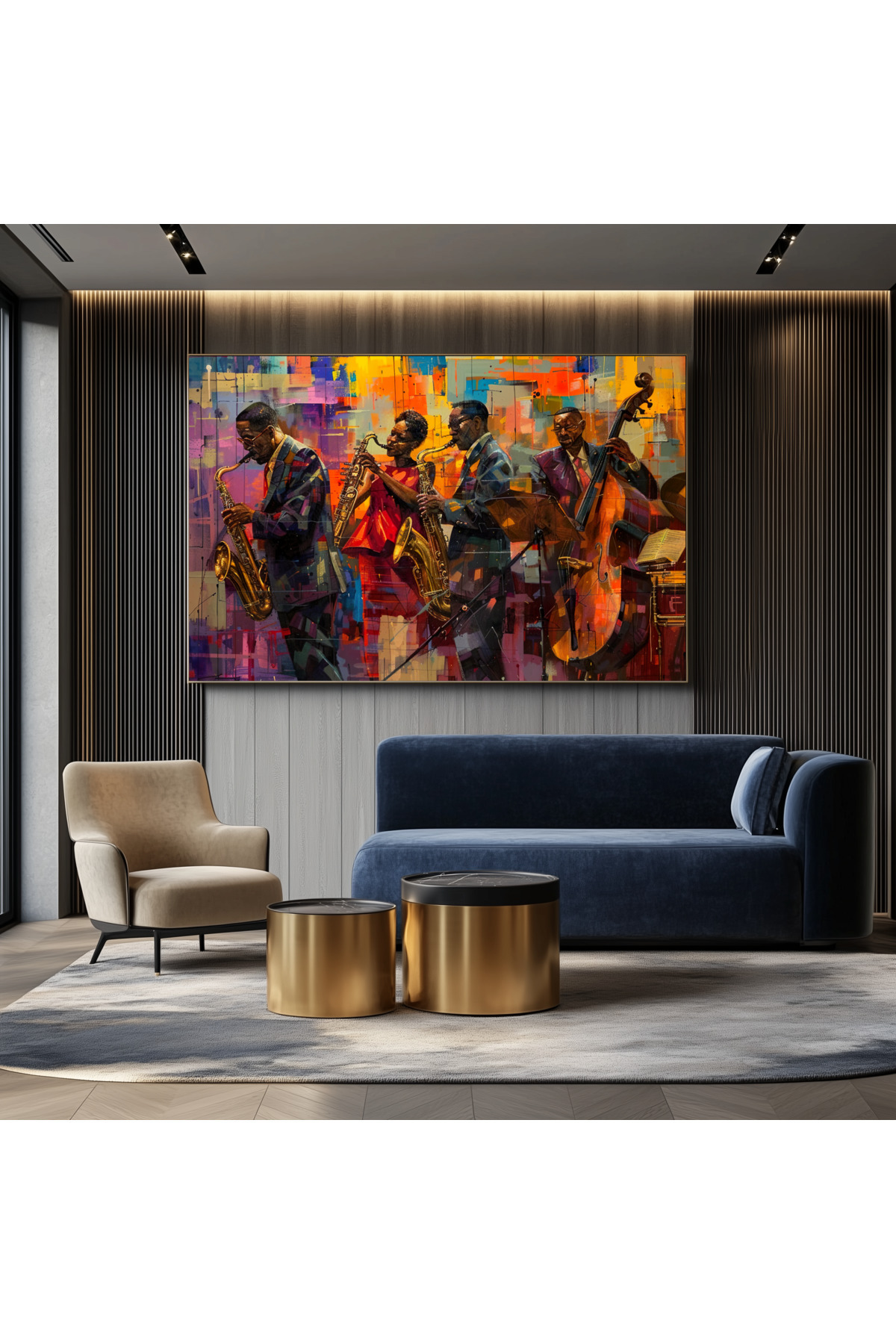 Caz Ritimleri Renkli Kanvas Tablo, Müzik Temalı Modern Duvar Dekoru Caz Ritimleri Renkli Kanvas Tablo, Müzik Temalı Modern Duvar Dekoru YTCX1022-7 140 x 200