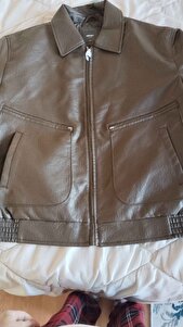 Slim Fit Uzun Kollu Fermuarlı Gömlek Yaka Suni Deri Ceket Slim Fit Uzun Kollu Fermuarlı Gömlek Yaka Suni Deri Ceket 6WAM20162HW XL