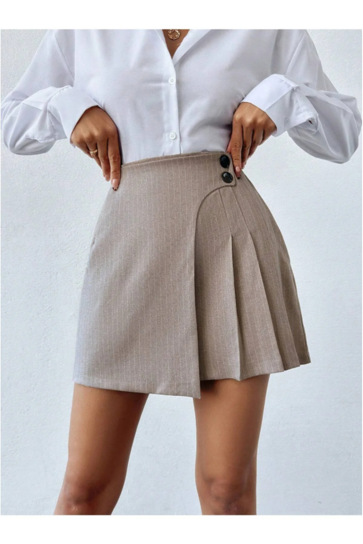 İki Düğmeli Pileli Mini Etek İki Düğmeli Pileli Mini Etek pilelietek1 L
