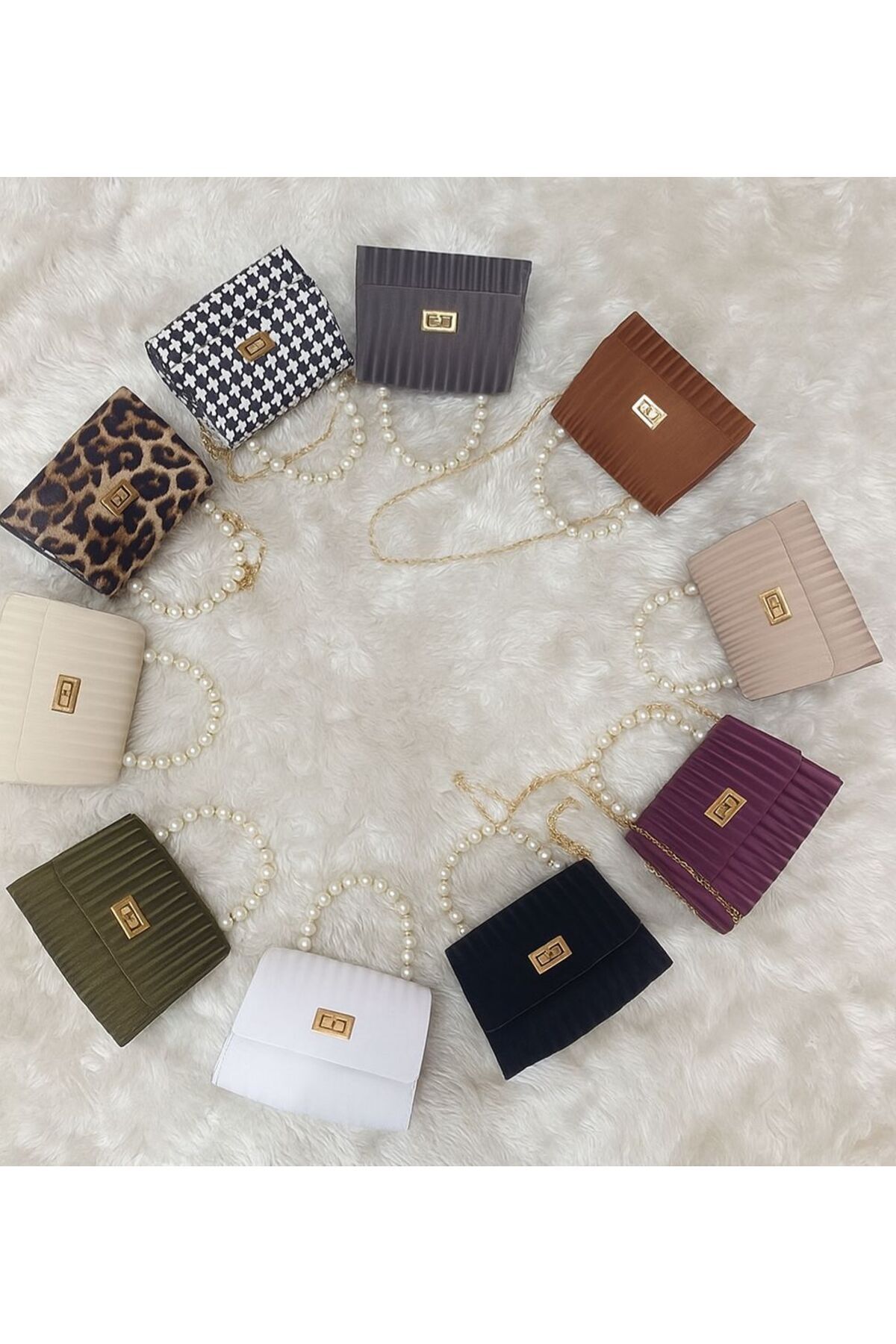 İnci Kulplu Gold Zincirli Mini Kadın Çanta İnci Kulplu Gold Zincirli Mini Kadın Çanta 012452 تک سایز
