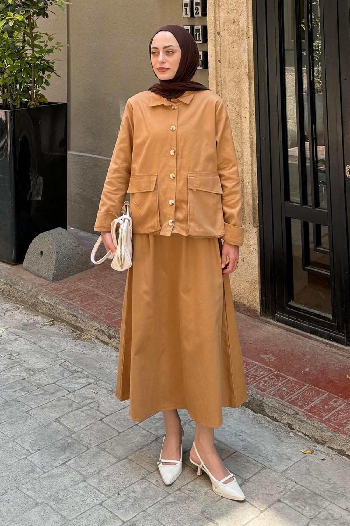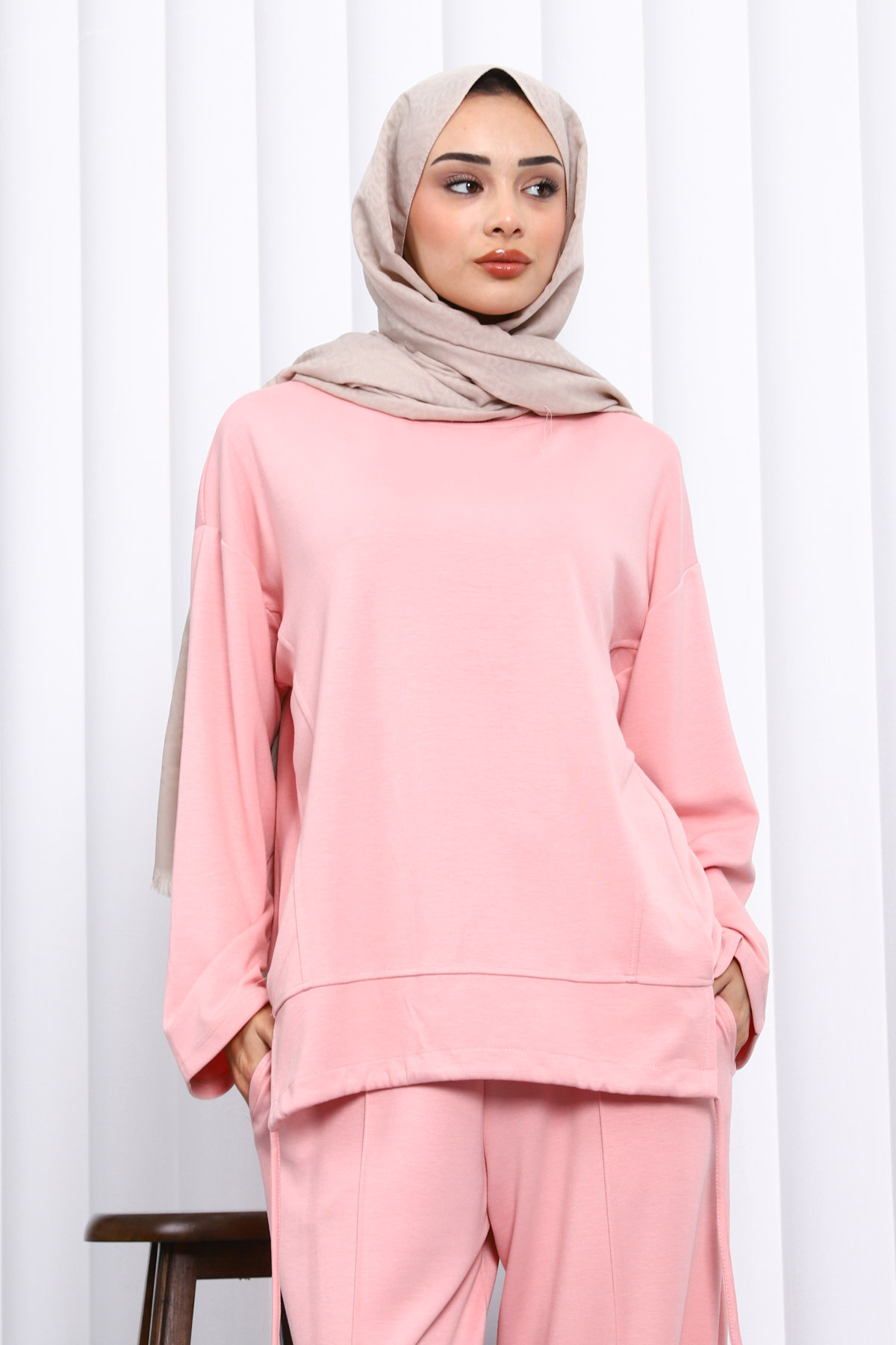 Pudra Ön Detaylı Modal Tunik Pantolonlu Takım Pudra Ön Detaylı Modal Tunik Pantolonlu Takım IMJ007475 XL