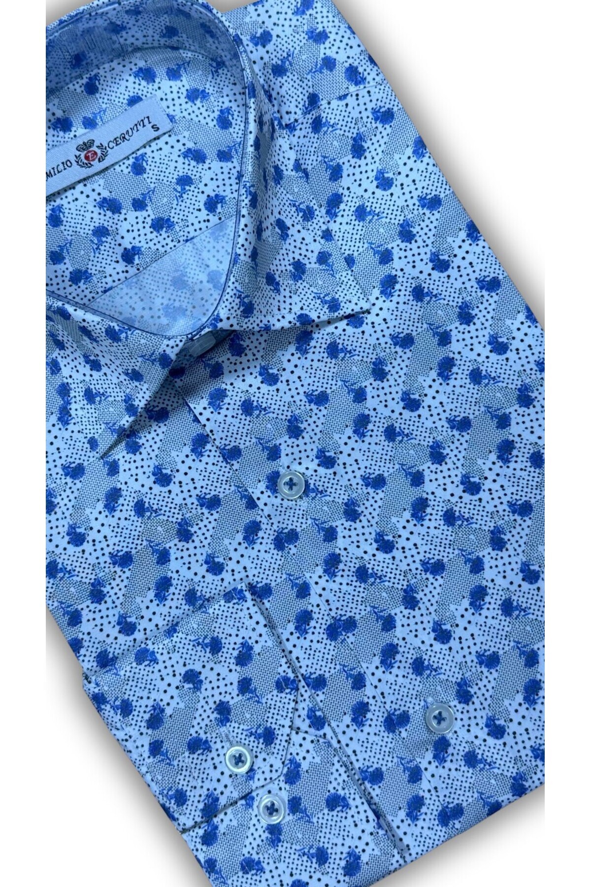 Mavi Çok Renkli Desenli Uzun Kollu Slim Fit Erkek Gömlek Mavi Çok Renkli Desenli Uzun Kollu Slim Fit Erkek Gömlek MDZMAN-48 2XL