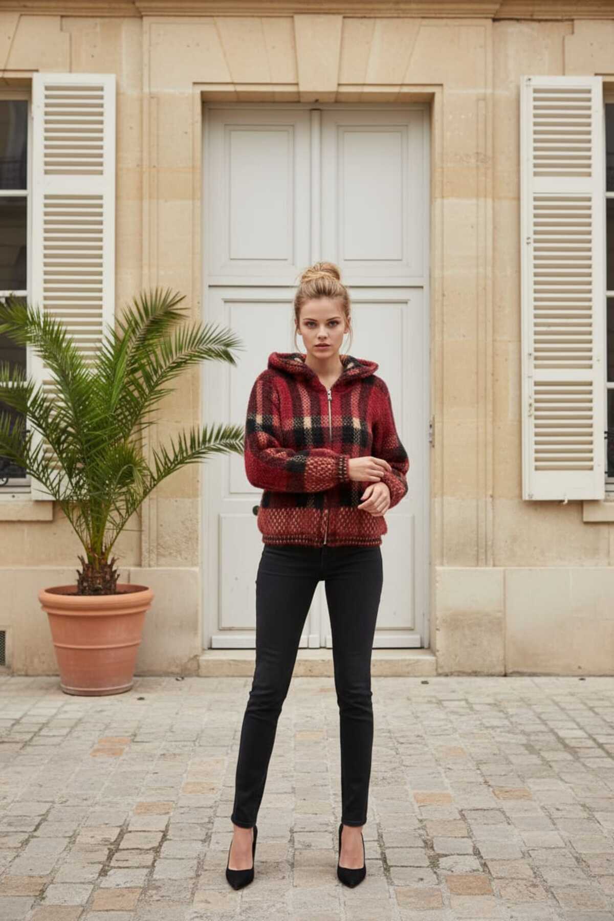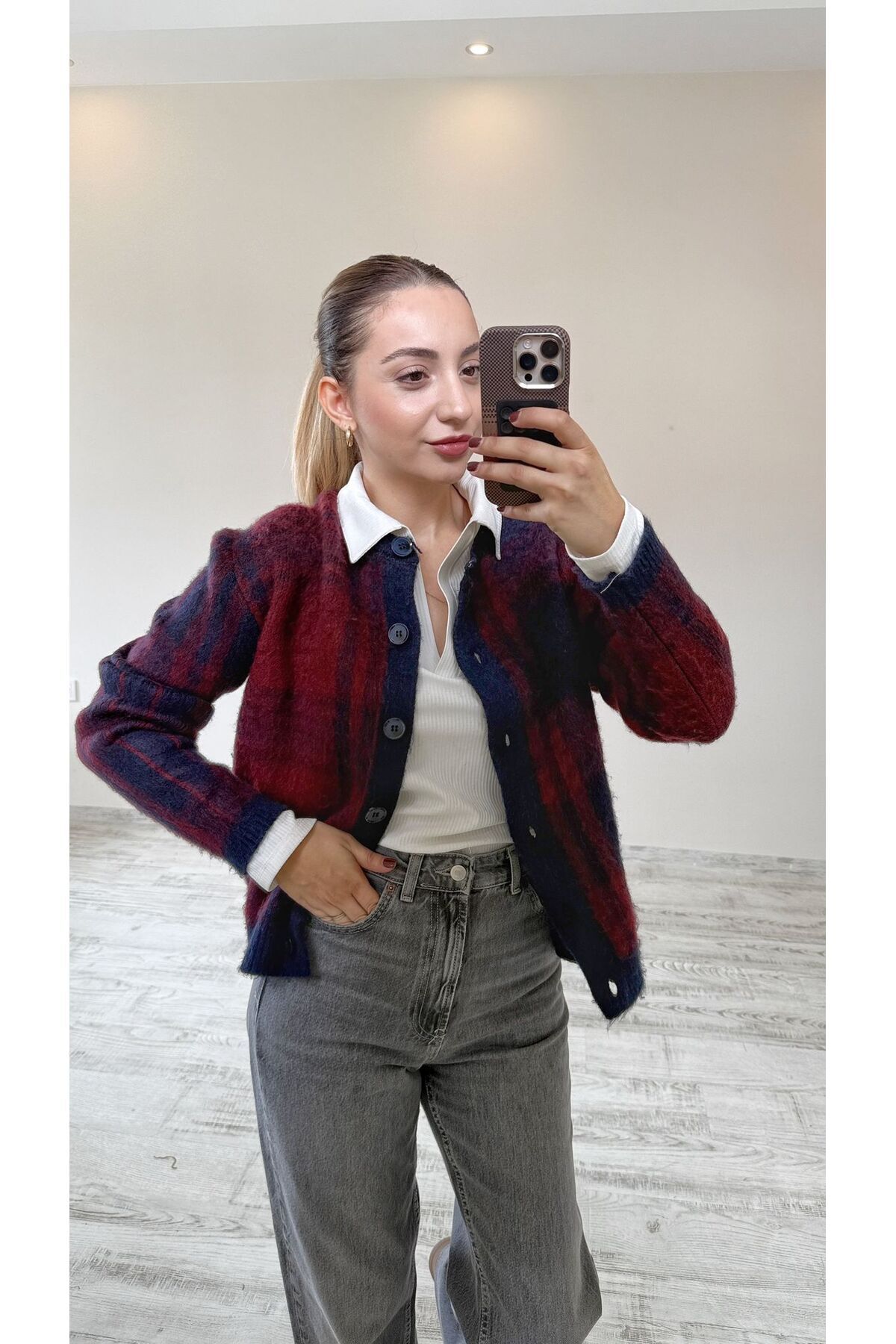 Kadın Ekose Desen Fermuarlı Dik Yaka %100 Pamuk Hırka Kadın Ekose Desen Fermuarlı Dik Yaka %100 Pamuk Hırka 4201 Standart