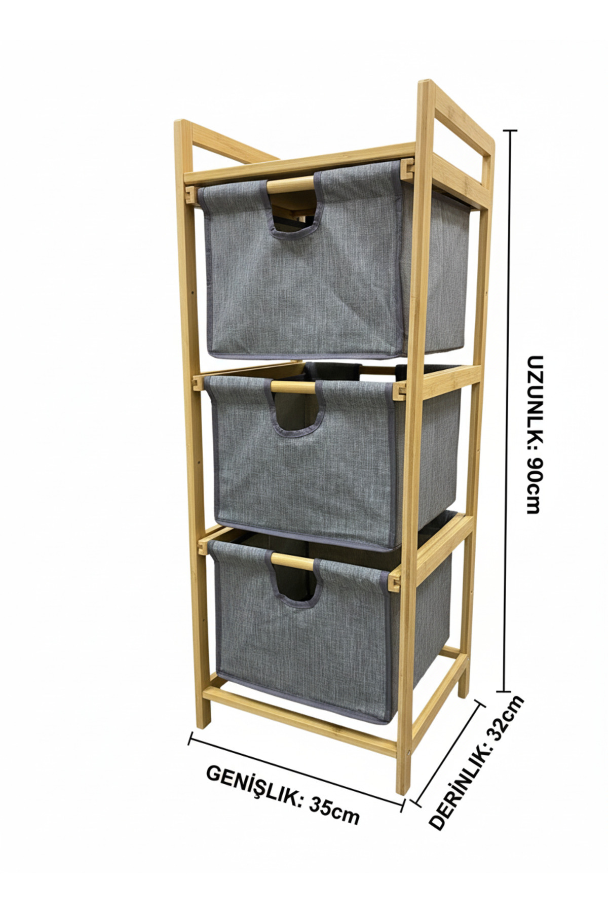 Bambu 3 Katlı Kumaş Sepetli Organizer Bambu 3 Katlı Kumaş Sepetli Organizer YM2048 تک سایز