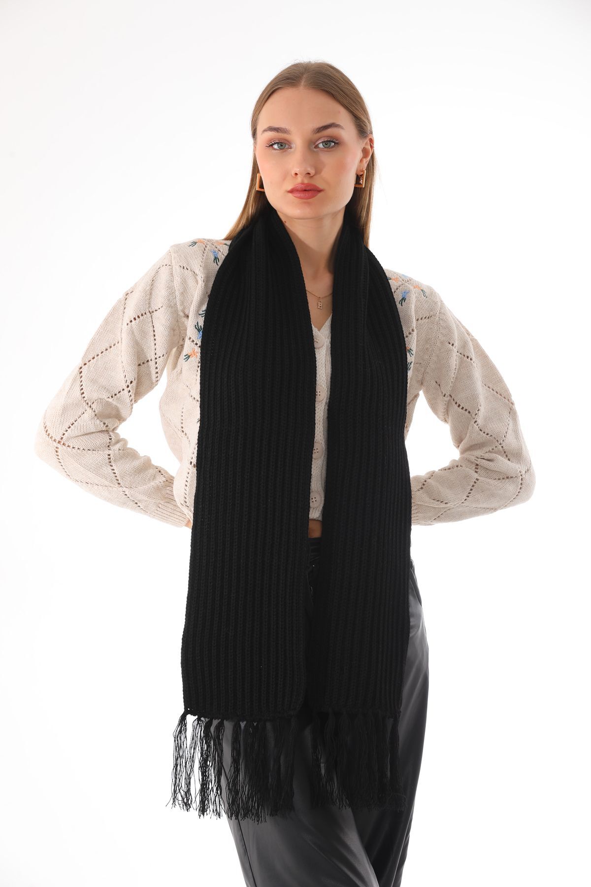 Unisex Selanik Örme Siyah Atkı Unisex Selanik Örme Siyah Atkı KML-1404 120 x 180 cm