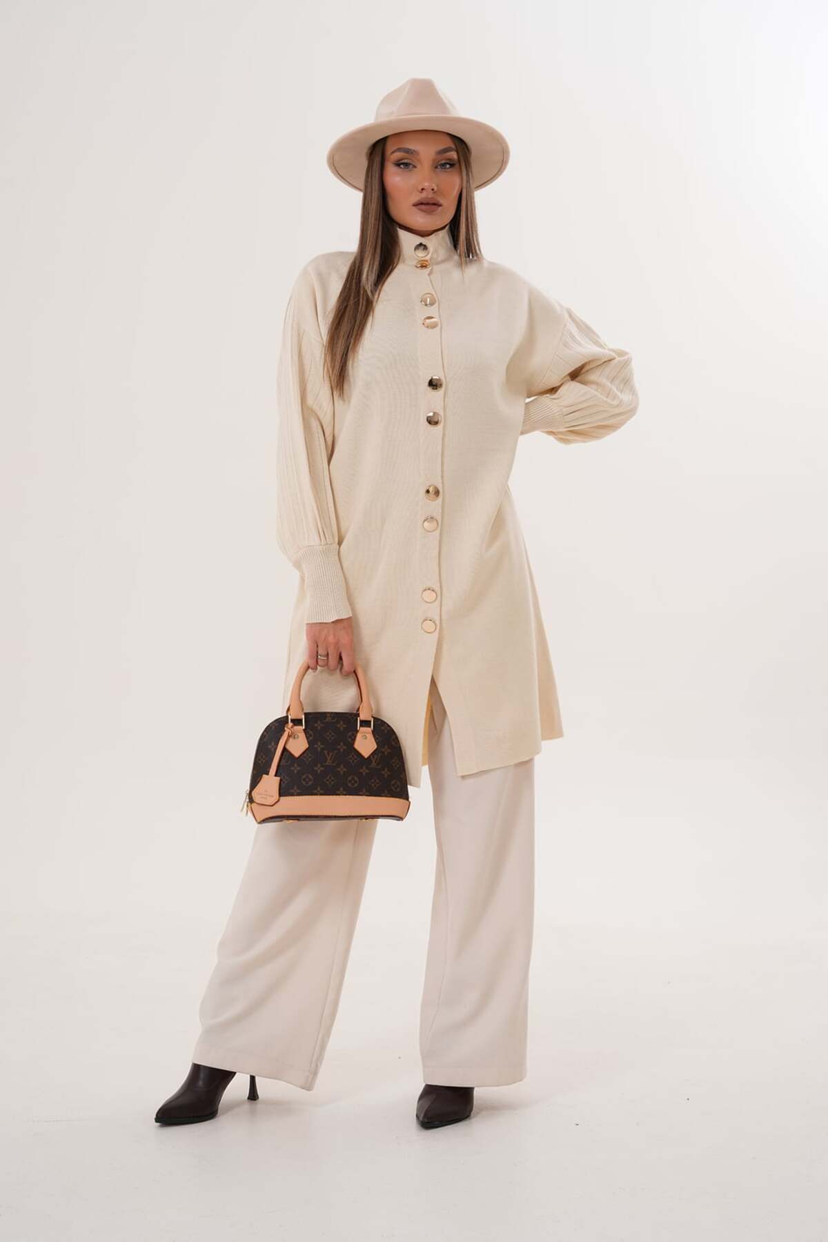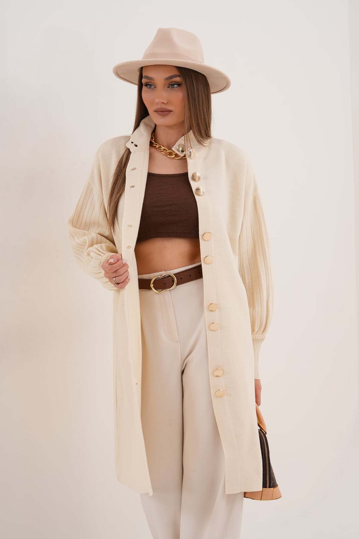 Önü Düğmeli Uzun Triko Hırka Önü Düğmeli Uzun Triko Hırka LRS344-16-004 Standart