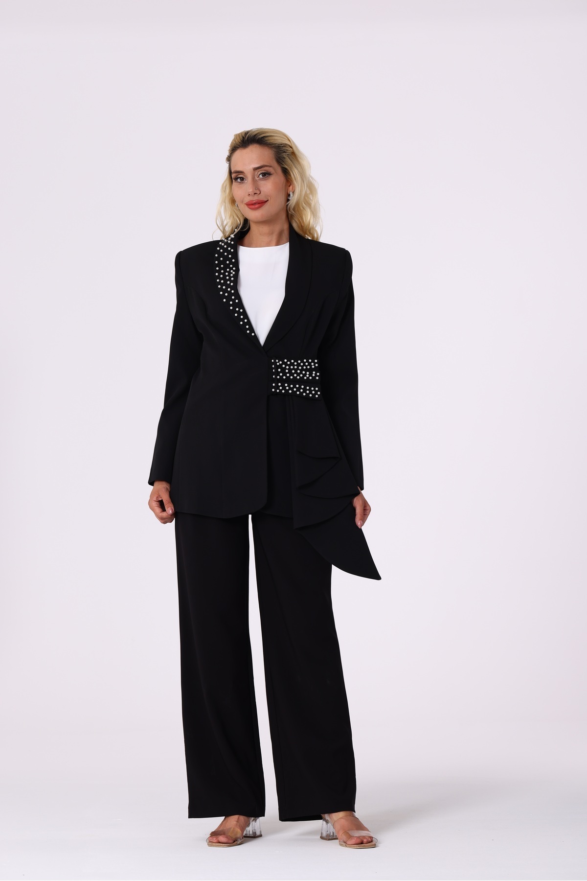 Kadın Fırfır Kuşak Detaylı Taş İşlemeli Özel Tasarım Ceket Kadın Fırfır Kuşak Detaylı Taş İşlemeli Özel Tasarım Ceket 24SS00034 42