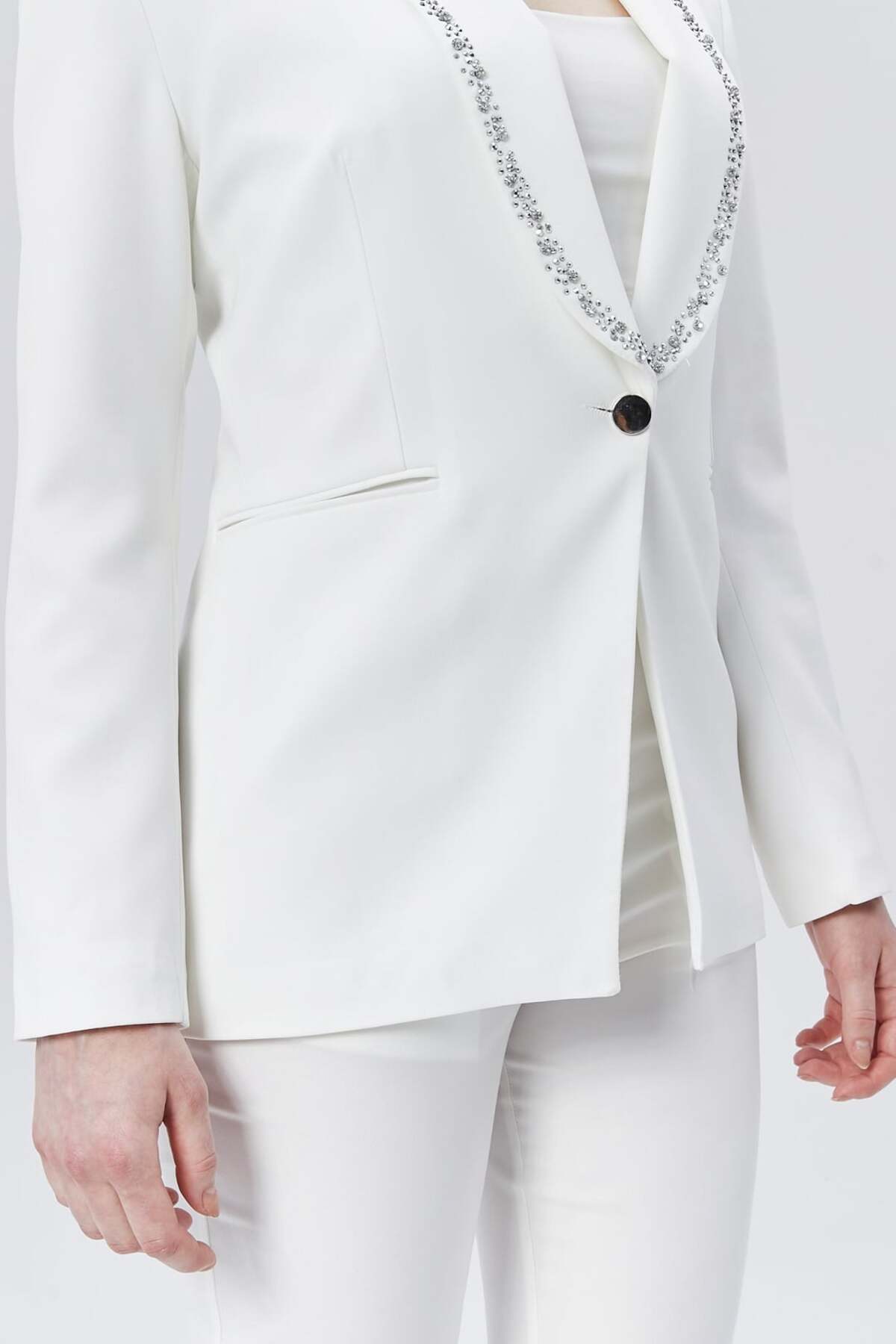 Kadın Yakası Taş İşlemeli Düğmeli Ceket Kadın Yakası Taş İşlemeli Düğmeli Ceket 24SS00037 42