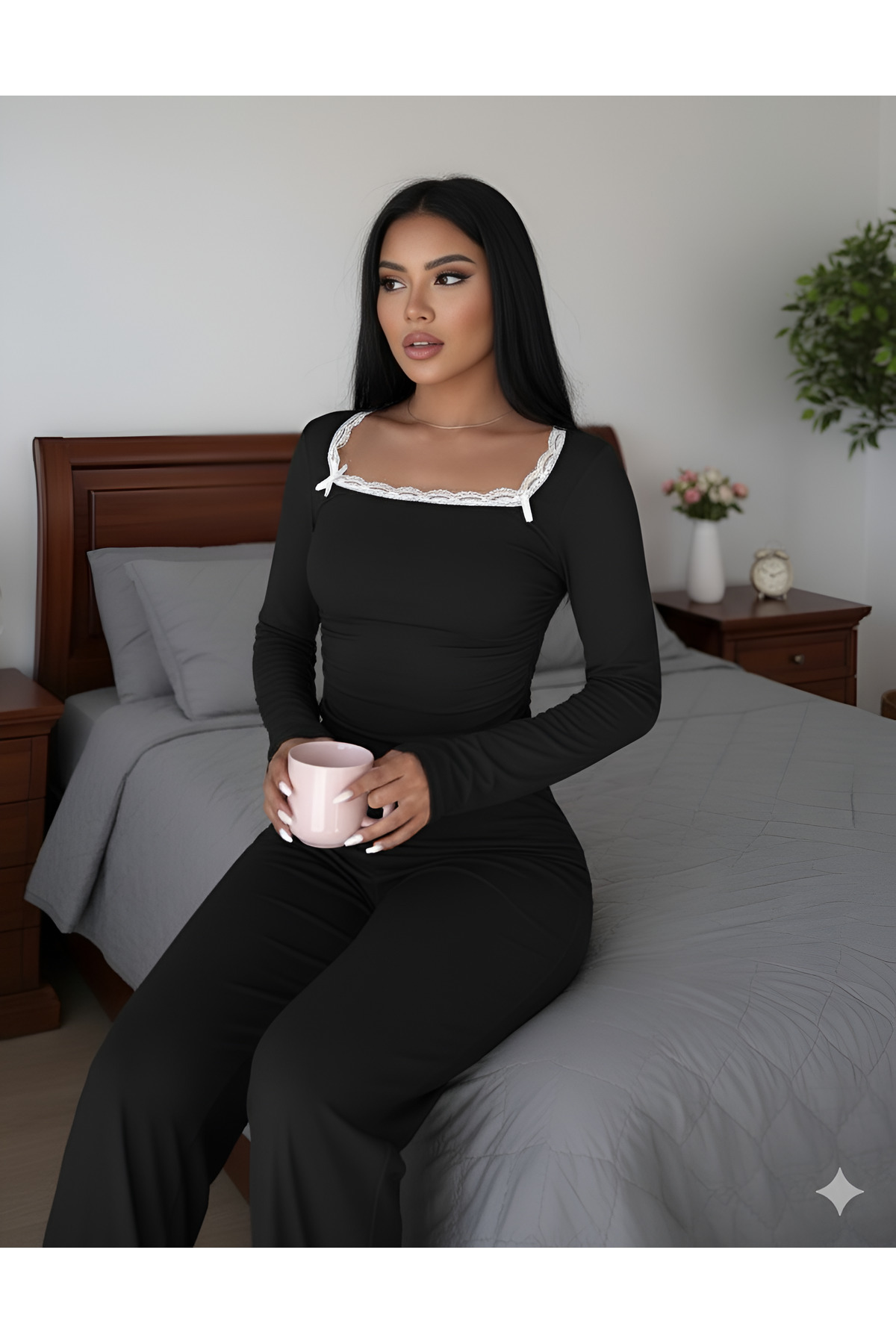 Kadın Pembe Dantelli Fiyonk Detaylı Uzun Pamuk Viskon Pijama Takımı Kadın Pembe Dantelli Fiyonk Detaylı Uzun Pamuk Viskon Pijama Takımı MRSBPJMTKM7020 3XL