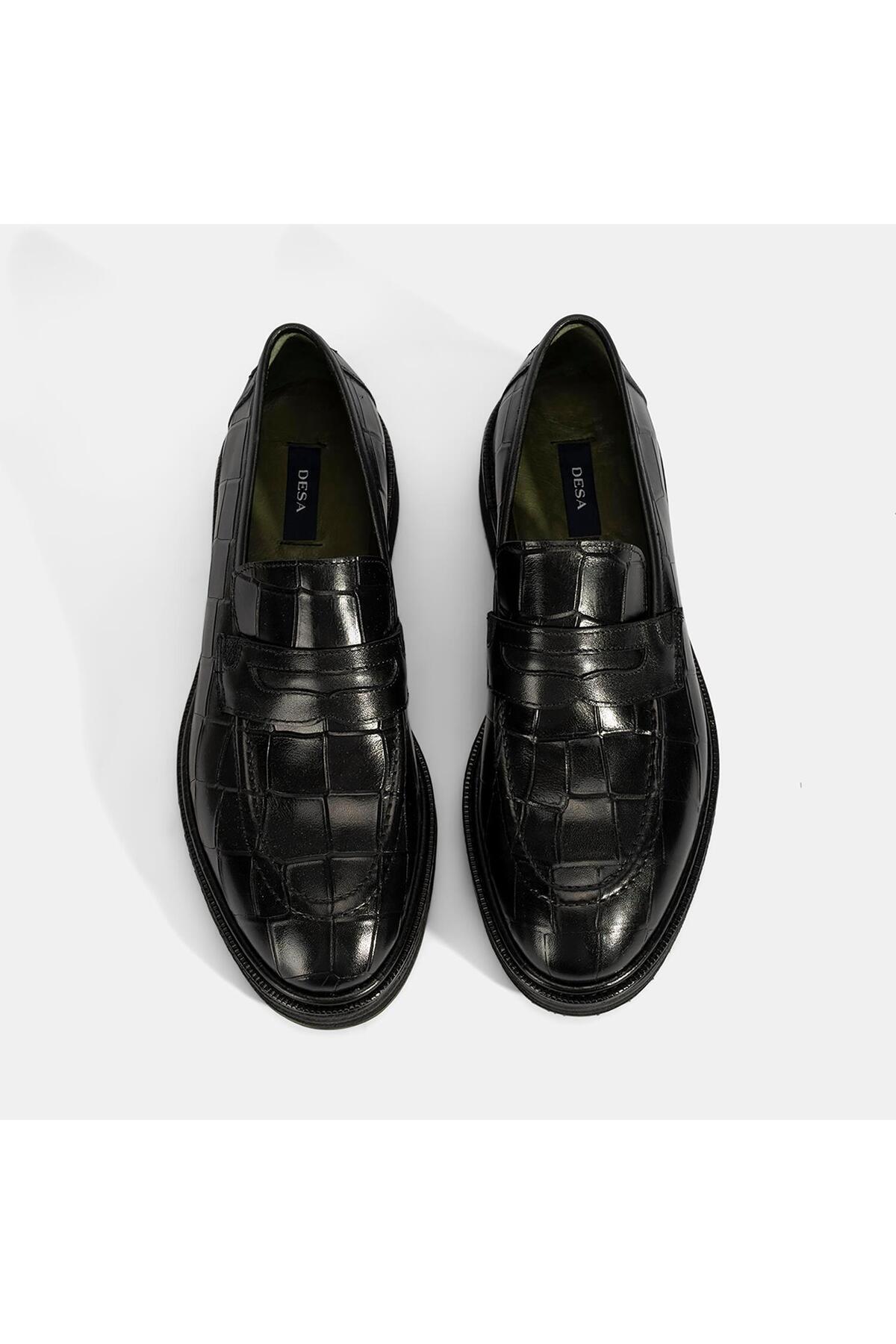 Erkek Siyah Kroko Baskılı Deri Loafer Erkek Siyah Kroko Baskılı Deri Loafer 2010055611 45