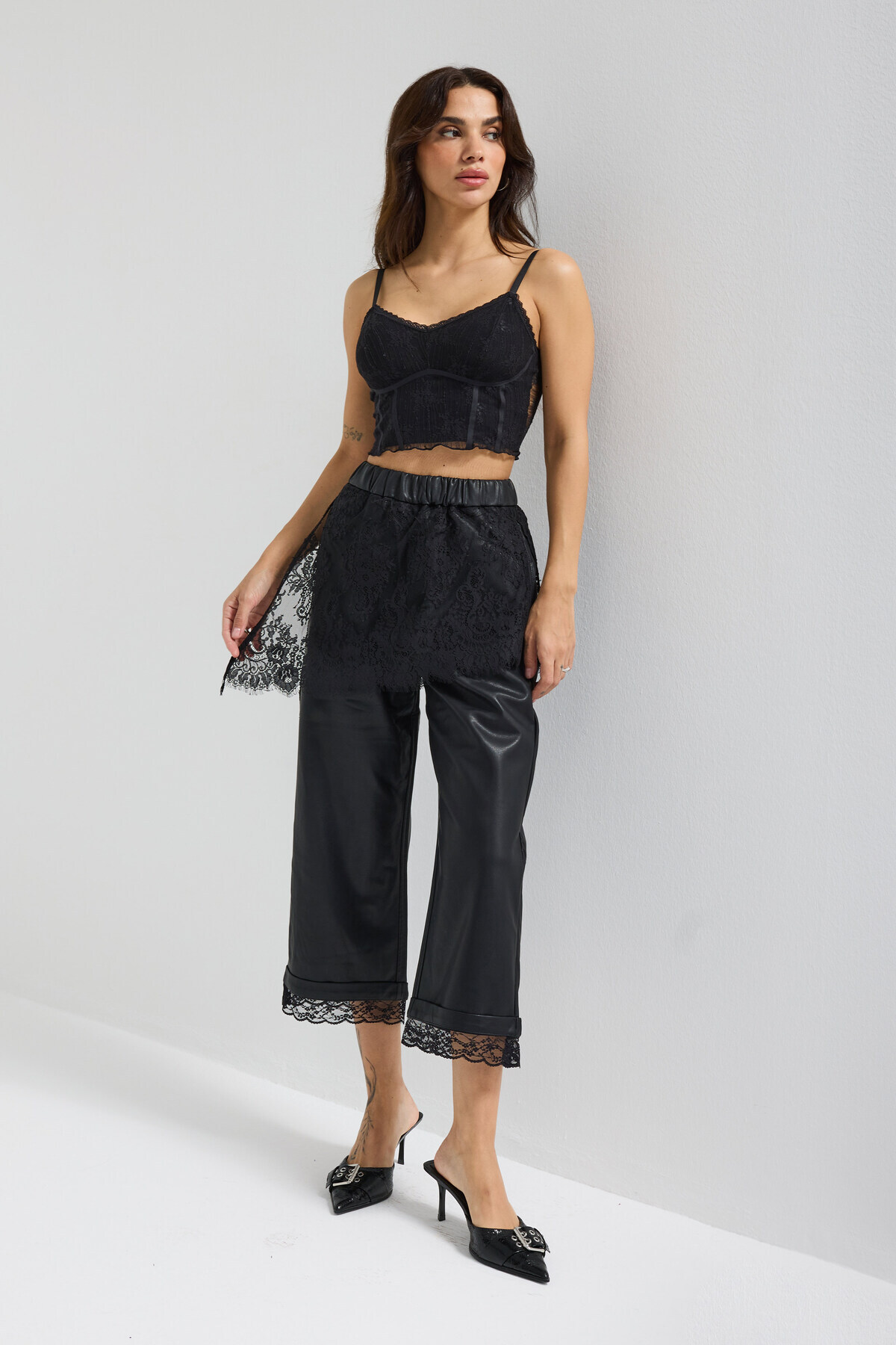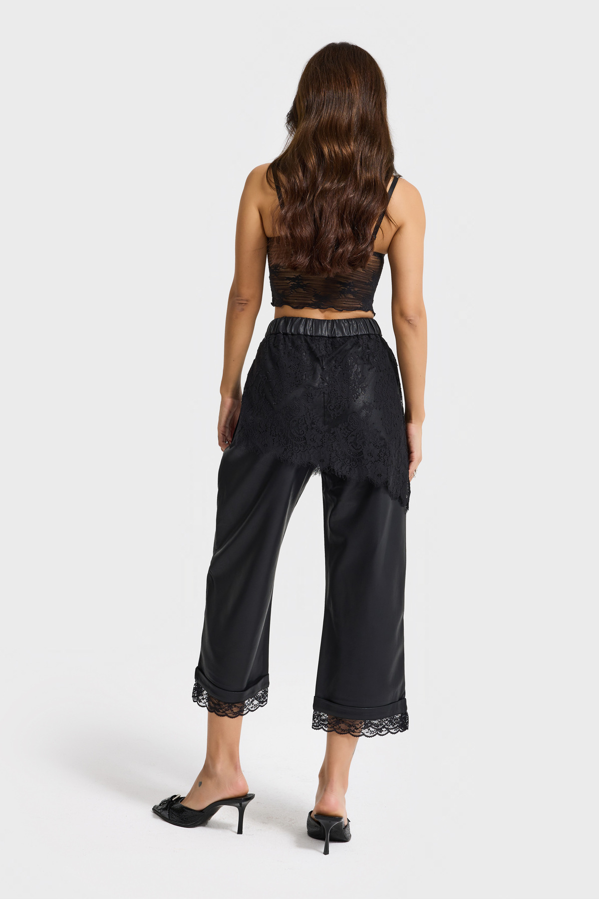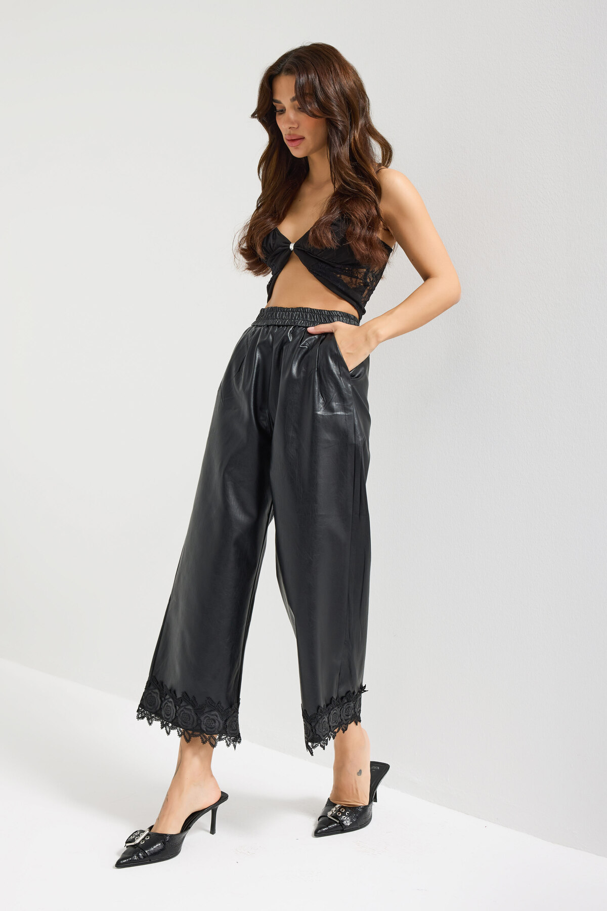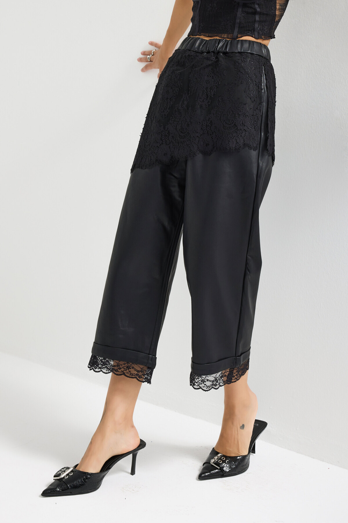 Kadın Siyah Renk Dantel Etek Detaylı Özel Tasarım Suni Deri Pantolon Kadın Siyah Renk Dantel Etek Detaylı Özel Tasarım Suni Deri Pantolon ITSBASIC CH-230 L