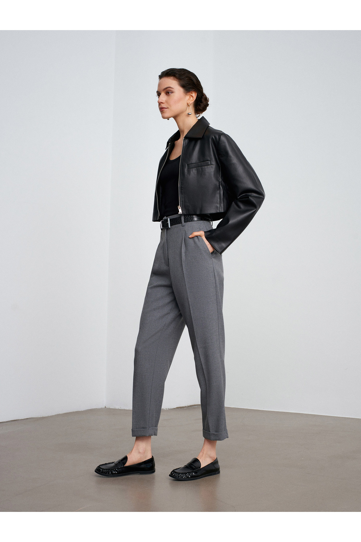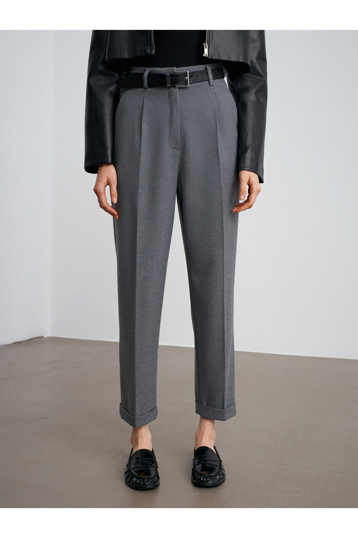 72213 Kıvrık Paça Kemerli Pantolon-Gri 72213 Kıvrık Paça Kemerli Pantolon-Gri 101A72213 40