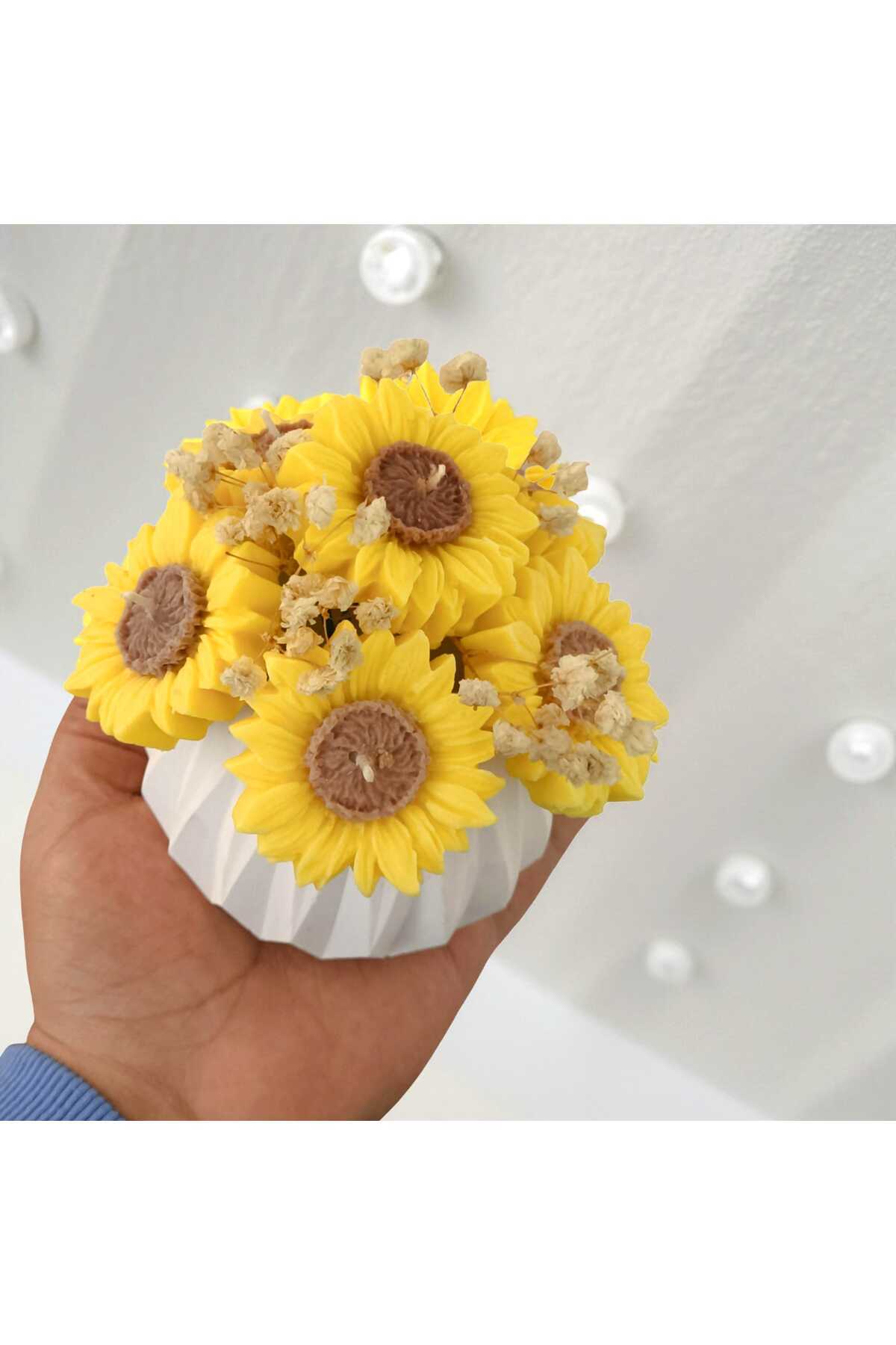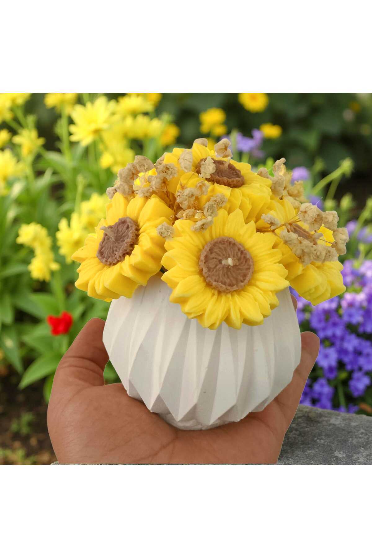 Ayçiçeği Buket Mum – El Yapımı Taş Tozu Vazo & %100 Soya Wax Kokulu Çiçek Mum Seti Ayçiçeği Buket Mum – El Yapımı Taş Tozu Vazo & %100 Soya Wax Kokulu Çiçek Mum Seti Ayçiçeği Buketi Kokulu Vazo Mum تک سایز