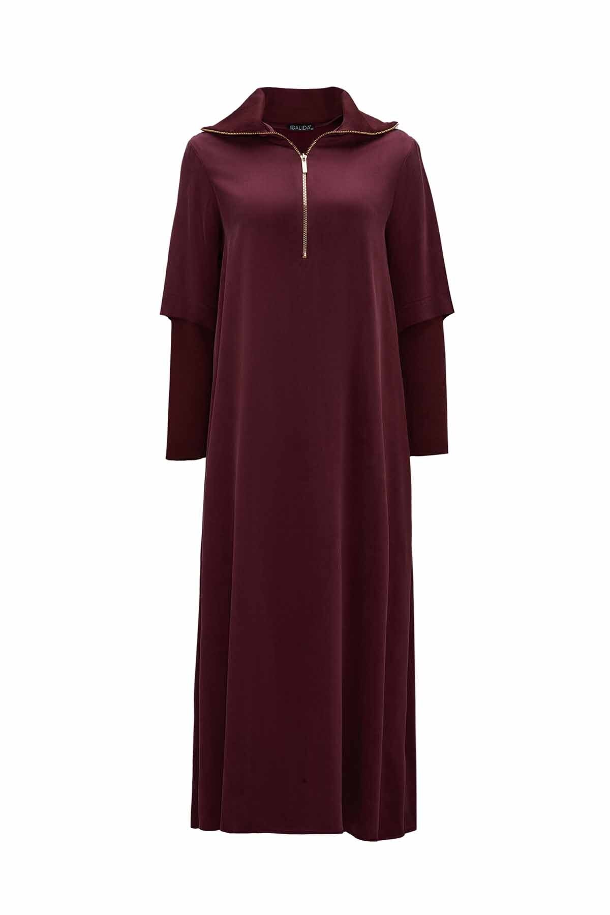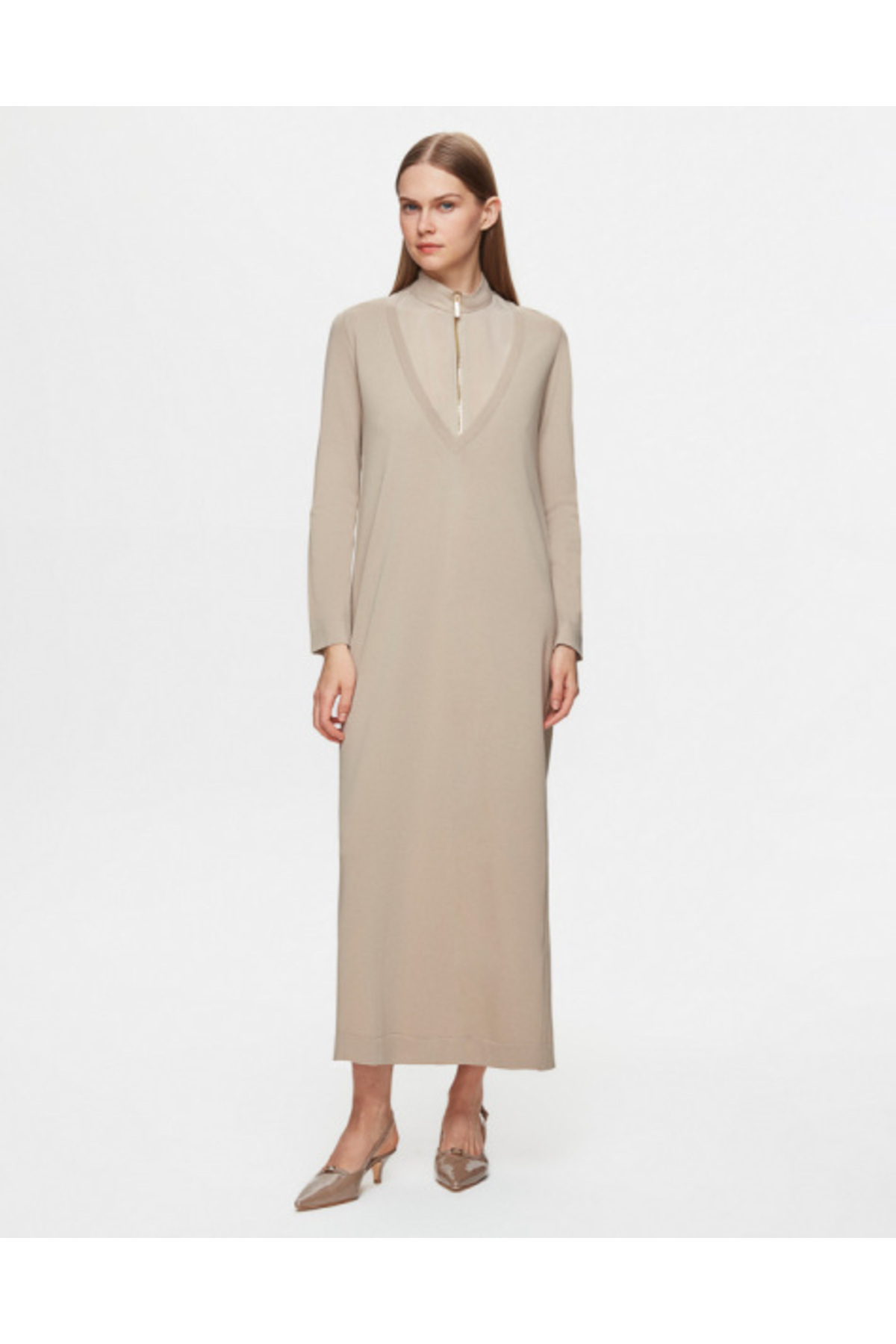 Yakası Fermuarlı Cupro Kahverengi Elbise Yakası Fermuarlı Cupro Kahverengi Elbise 14607 46