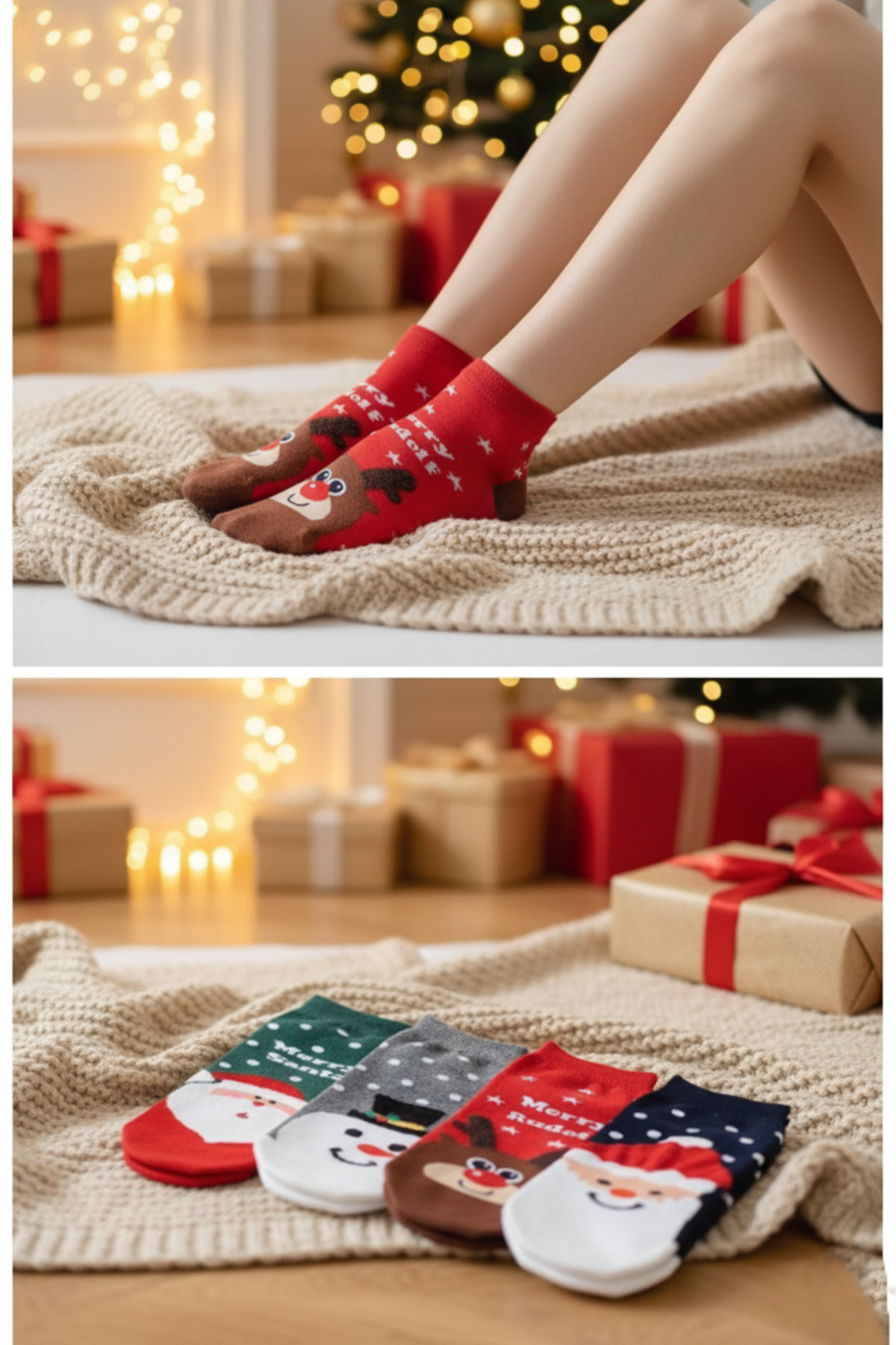 4'lü Paket Unisex Yılbaşı Çorap Renkli Soket Çorap Yeniyıl 4'lü Paket Unisex Yılbaşı Çorap Renkli Soket Çorap Yeniyıl 3302 NOEL 39-42