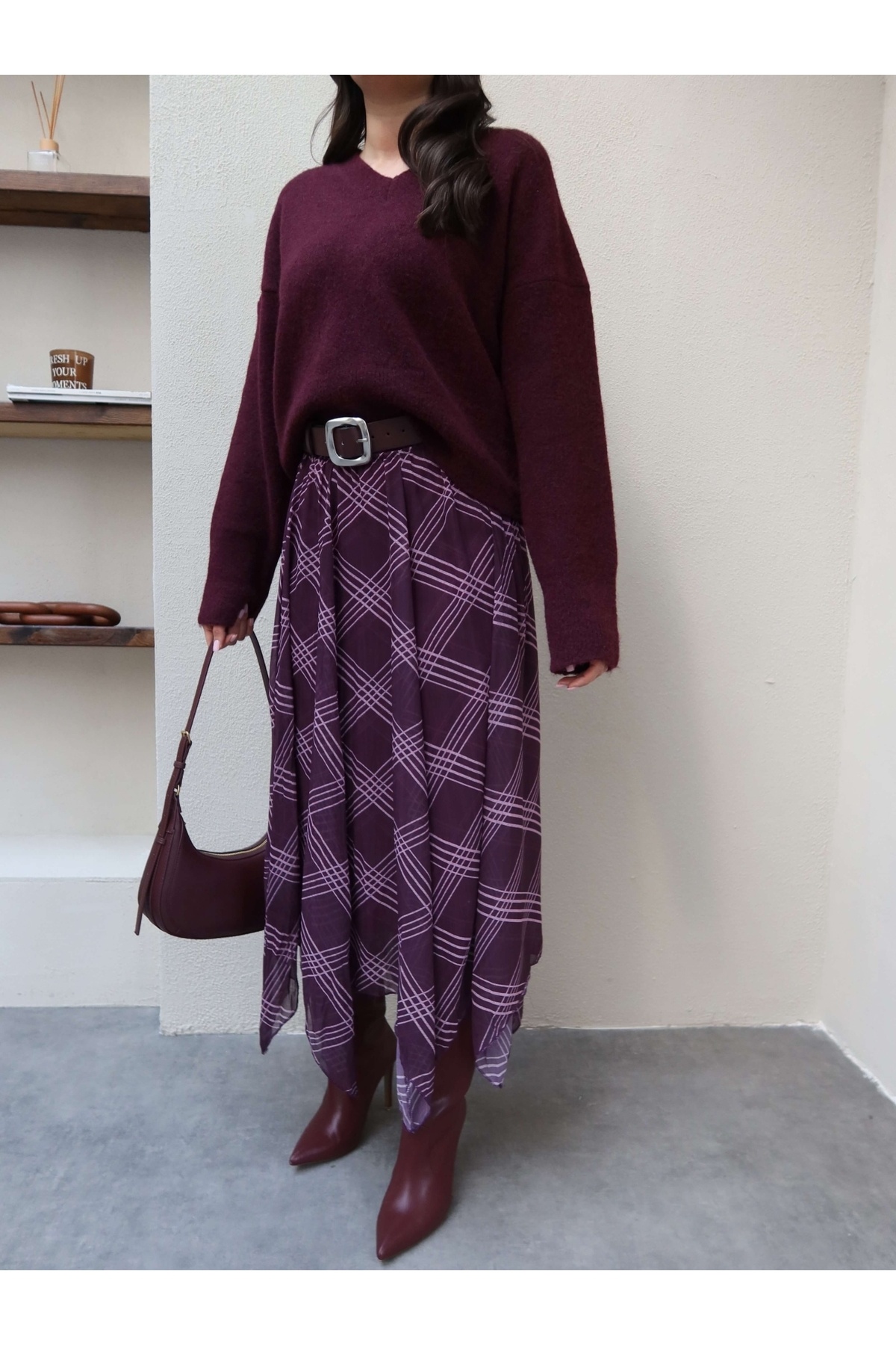 Ekose Desenli Asimetrik Etek Ekose Desenli Asimetrik Etek EH-6204 L