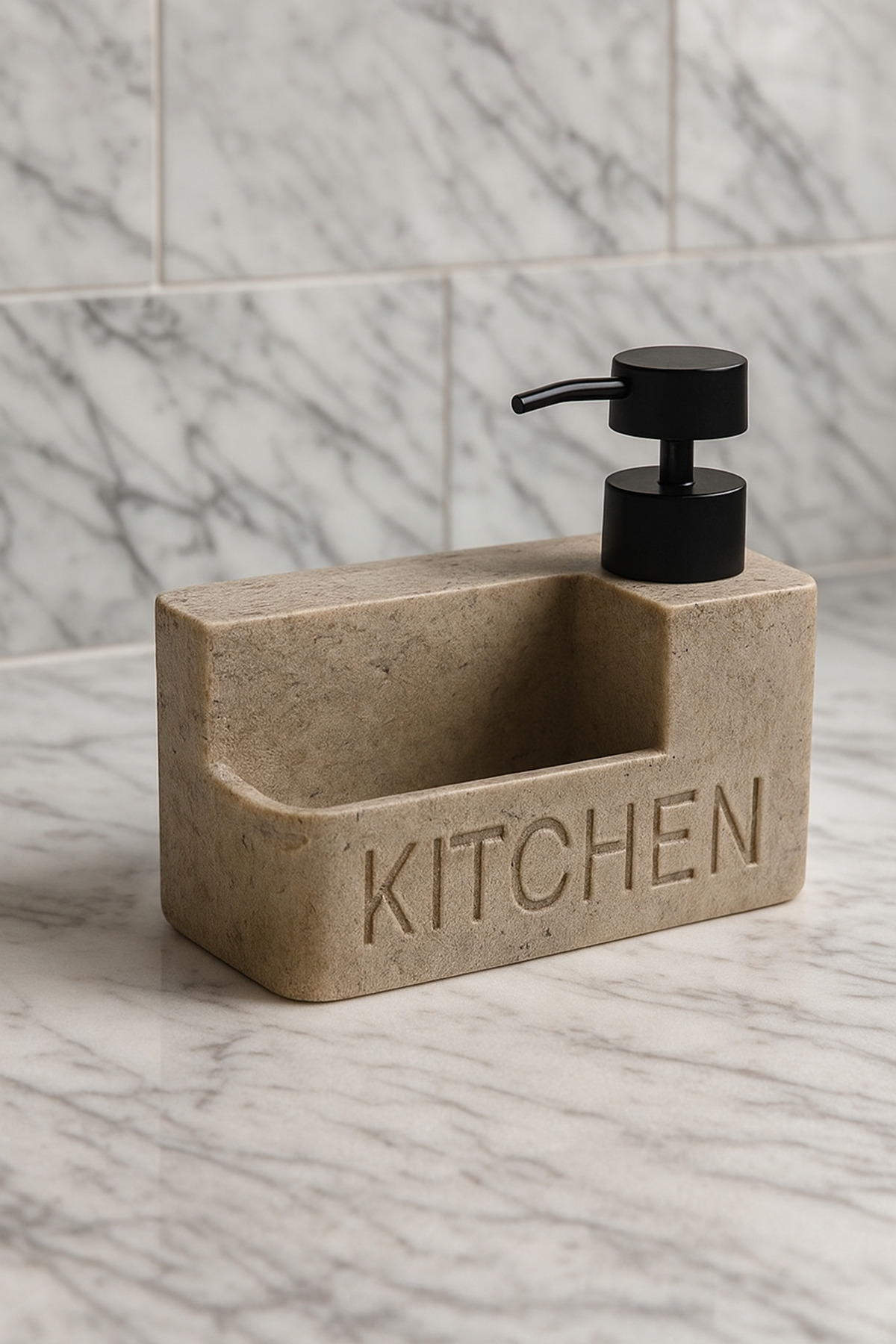 Modern Siyah Detaylı Banyo Tezgah Üstü Sıvı Sabunluk ve Süngerlik Seti-Taş Görünümlü Organizer Modern Siyah Detaylı Banyo Tezgah Üstü Sıvı Sabunluk ve Süngerlik Seti-Taş Görünümlü Organizer PŞ-TLC7 تک سایز