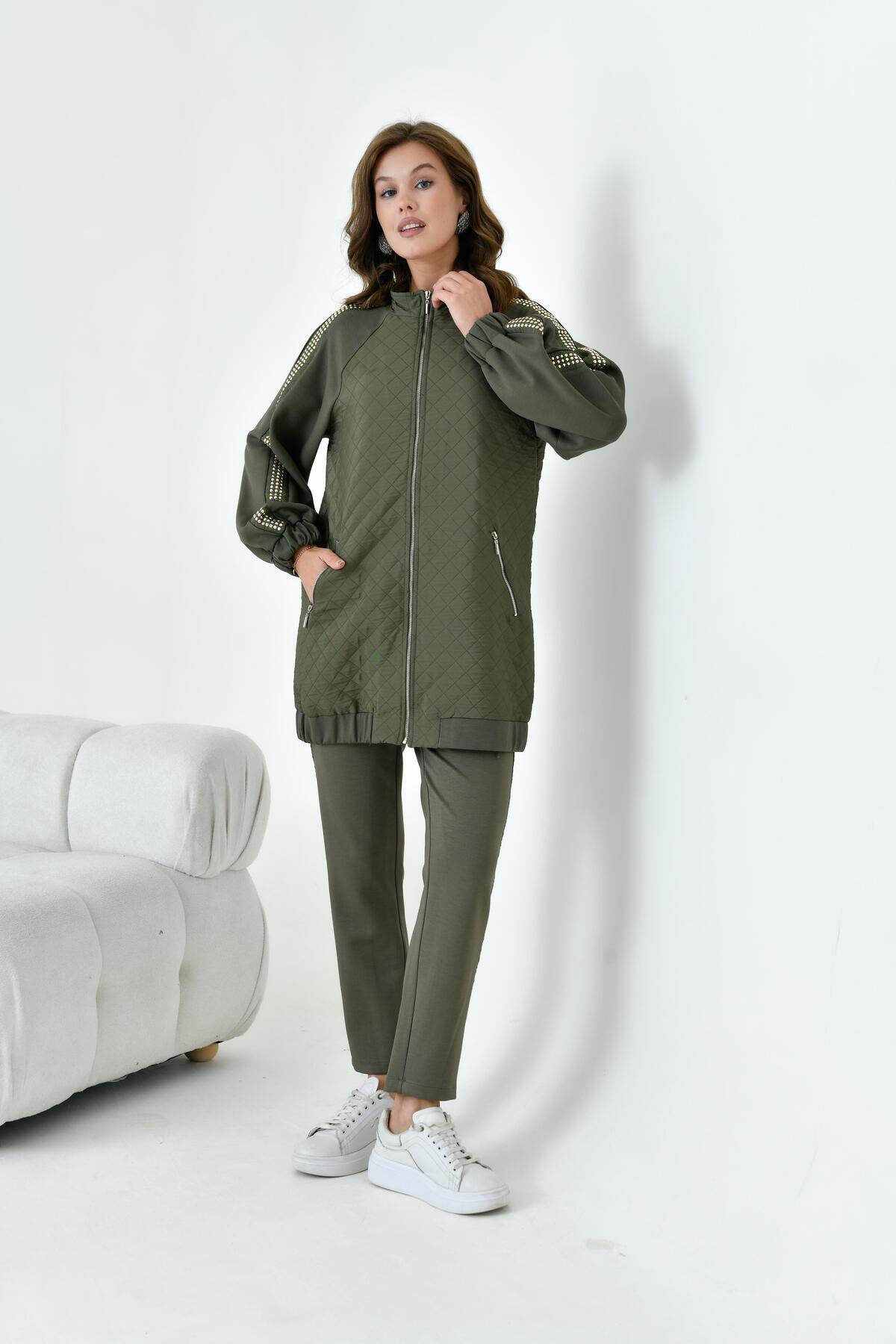 Kadın Kollar Deri Detaylı Takım Haki 31245 Kadın Kollar Deri Detaylı Takım Haki 31245 42