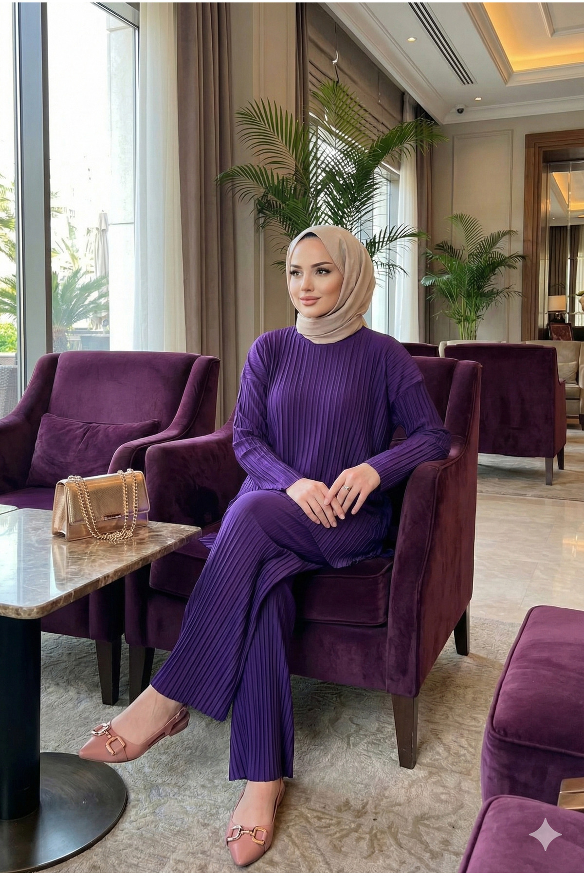 Kadın Sandy mor Komple Piliseli Tunik Pantolon Tesettür İkili Takım Kadın Sandy mor Komple Piliseli Tunik Pantolon Tesettür İkili Takım PINAR PİLİSELİ TAKIM MSTD