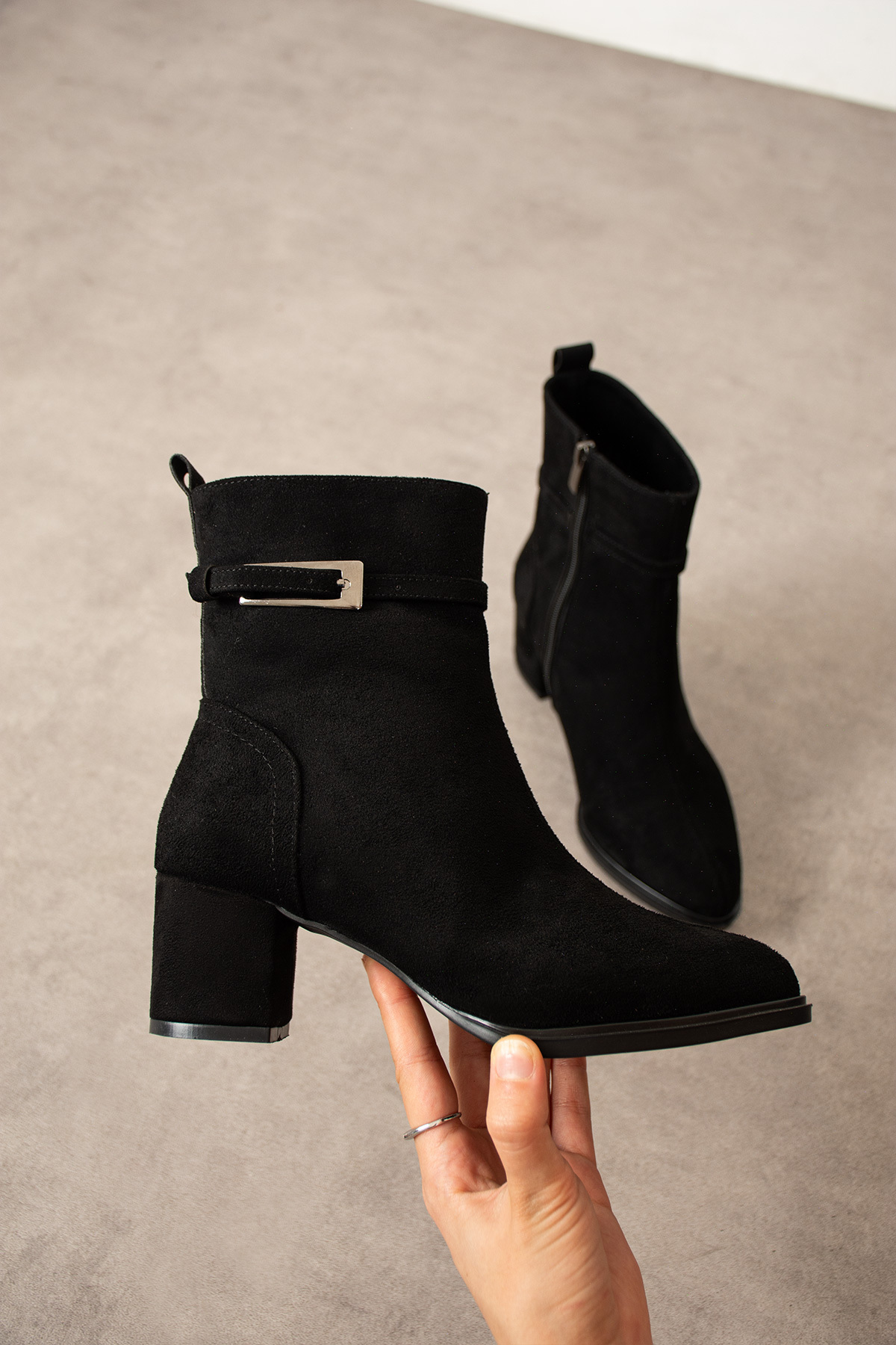 LUNARA Kadın Siyah Süet Tokalı Topuklu Kısa Konç Bot Bootie LUNARA Kadın Siyah Süet Tokalı Topuklu Kısa Konç Bot Bootie DBBBOT0003 40