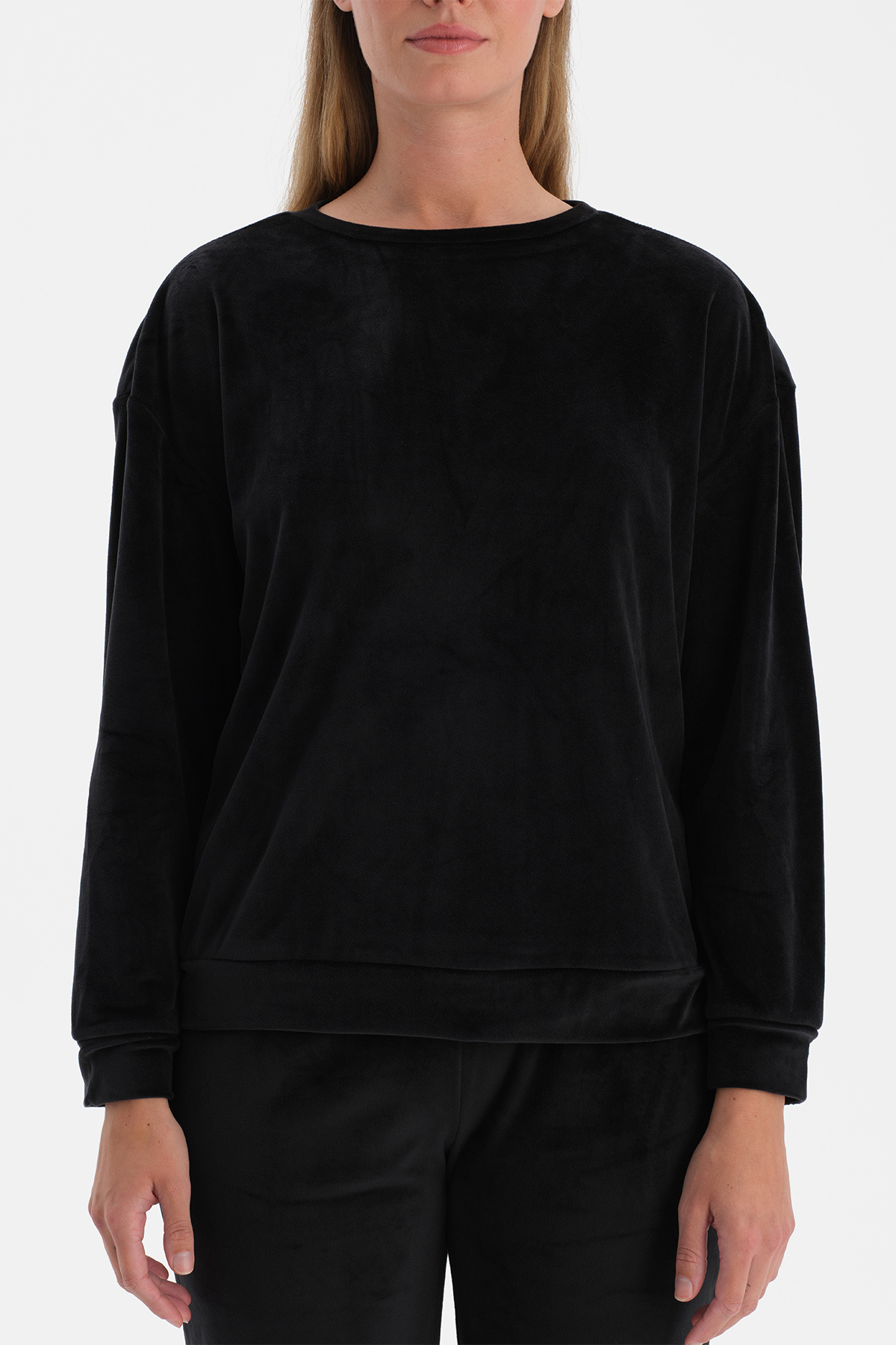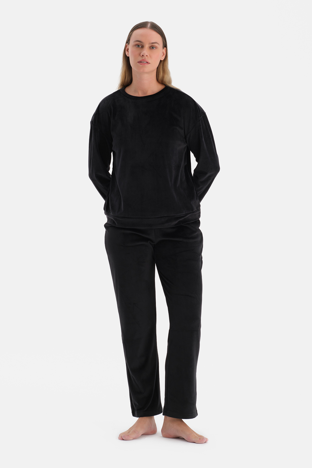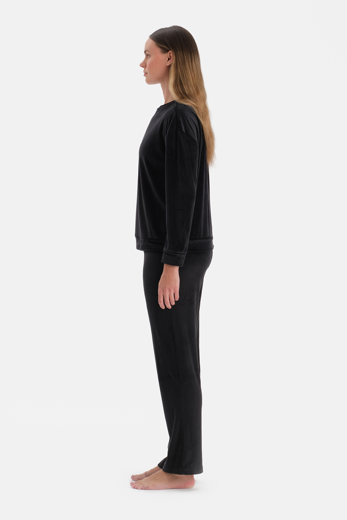 Siyah Uzun Kollu Kadife Tişört Pantolon Pijama Takımı Siyah Uzun Kollu Kadife Tişört Pantolon Pijama Takımı 25WW17702BB 2XL