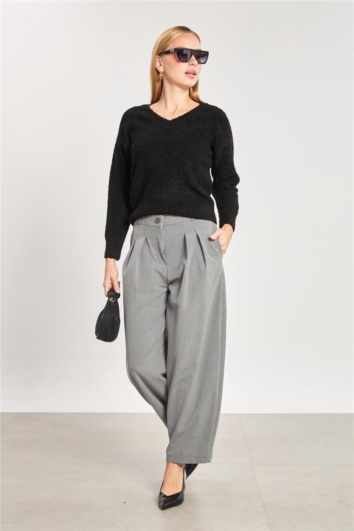 Kadın V Yaka Buklet Kazak - Siyah Kadın V Yaka Buklet Kazak - Siyah 228-25K74002 Standart
