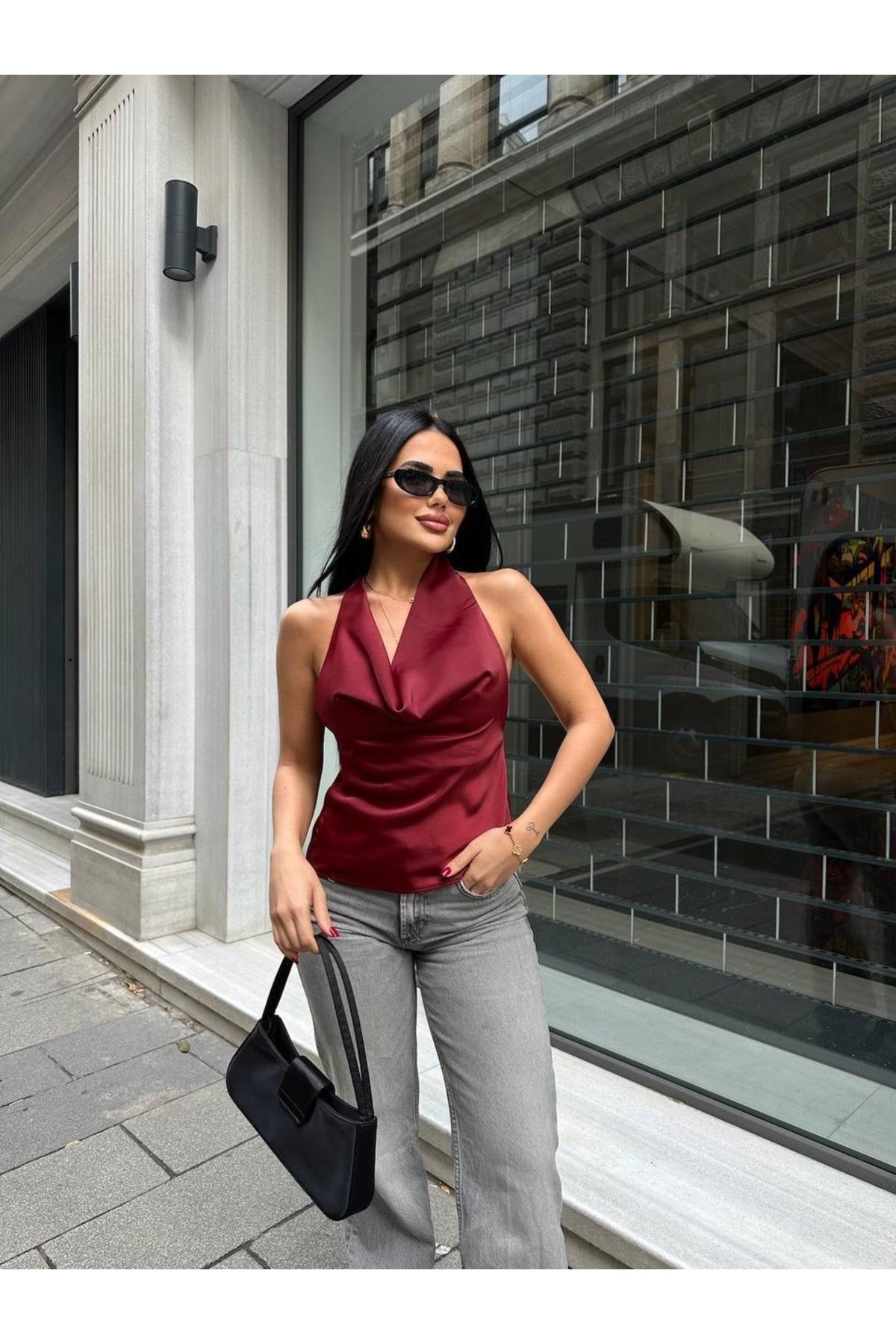 Kadın Boyundan Bağlamalı Saten Bluz Kadın Boyundan Bağlamalı Saten Bluz 6003 L