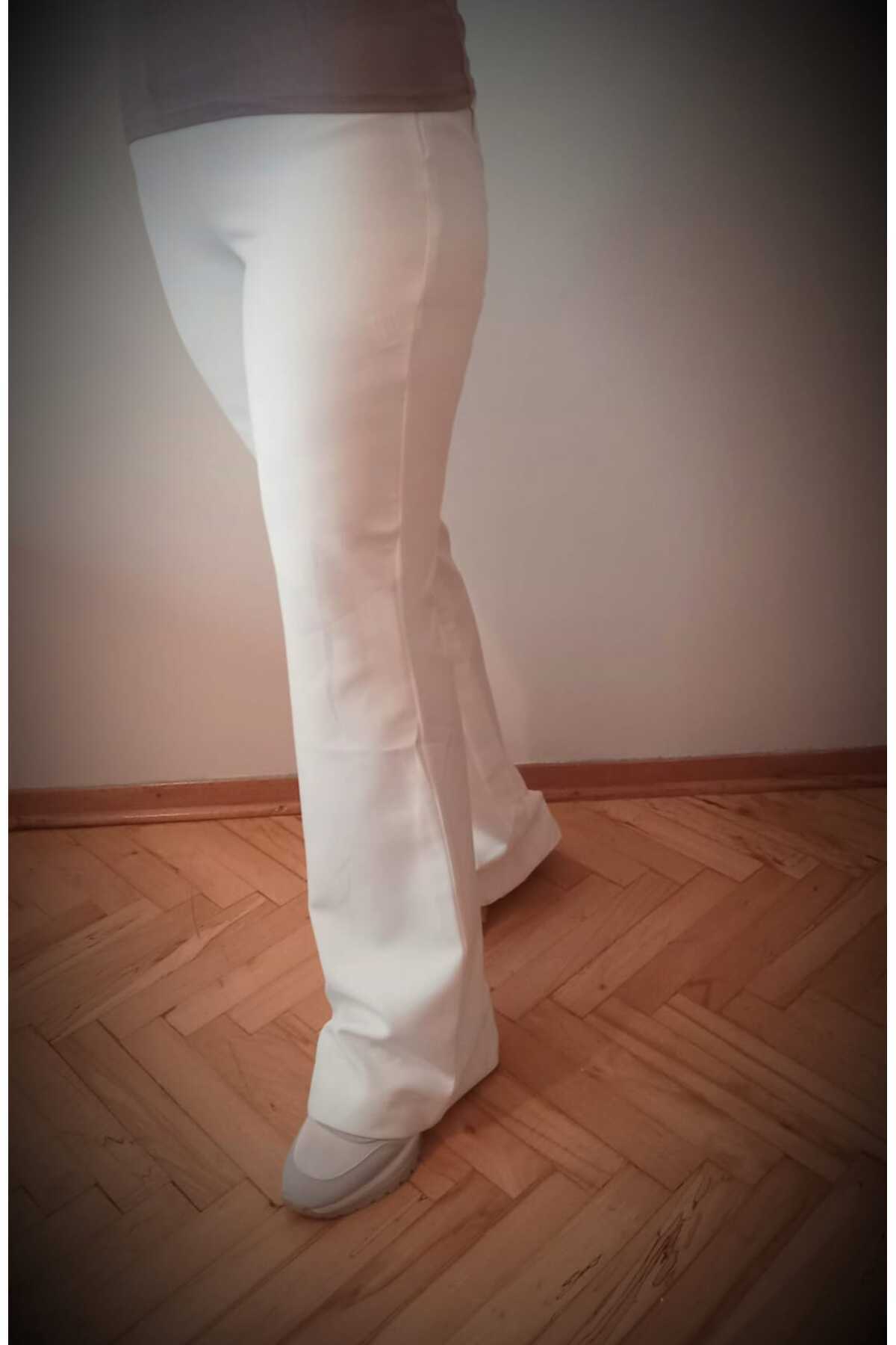 Beyaz Ispanyol Paça Likralı Pantolon 100 Cm Beyaz Ispanyol Paça Likralı Pantolon 100 Cm PANTOLON020 XL