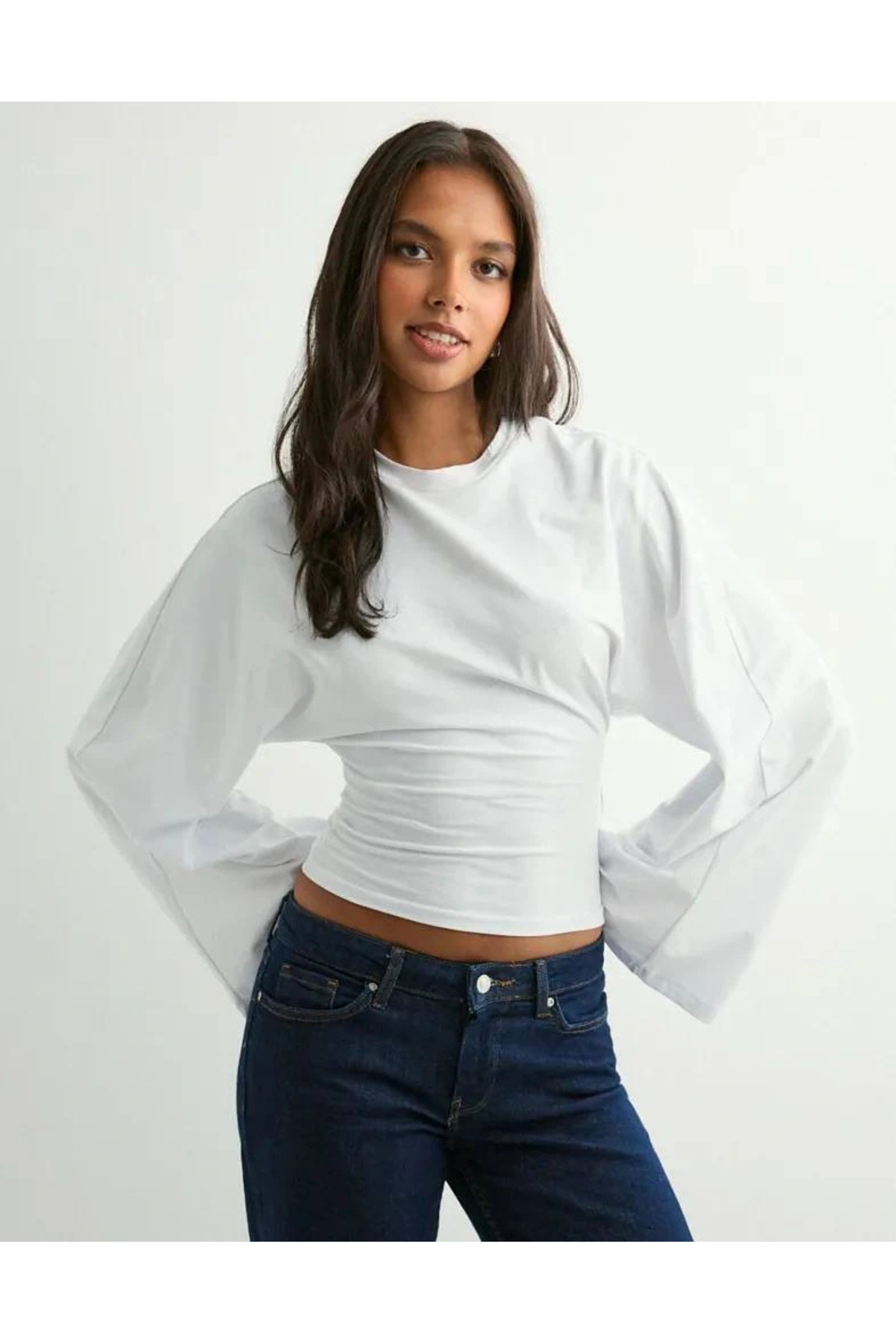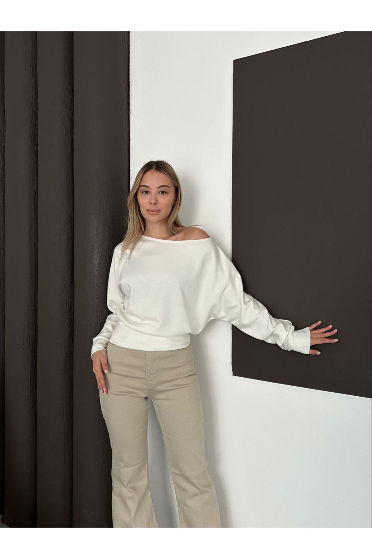 Krem Tek Omuz Yarasa Kol Modal Kumaş Bluz Krem Tek Omuz Yarasa Kol Modal Kumaş Bluz EA2800 L