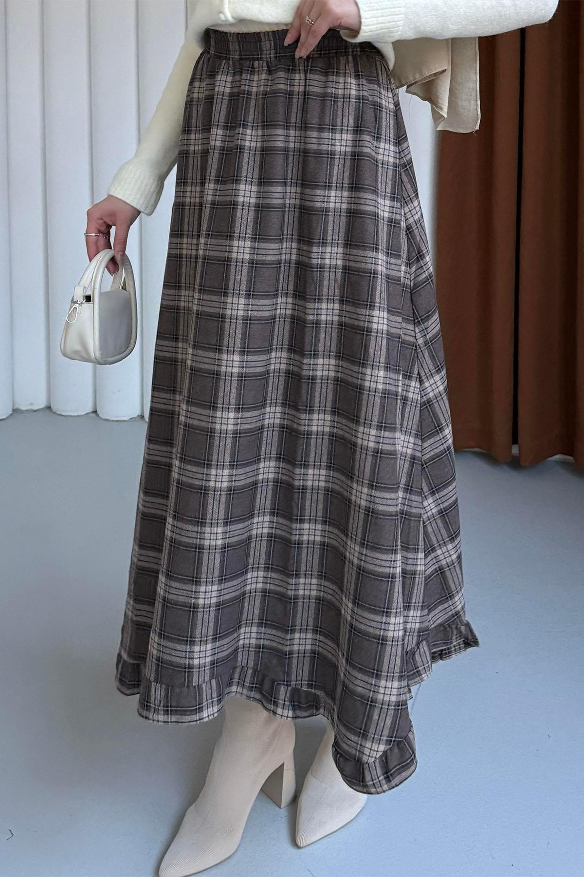 Kahverengi Goins Ekose Desenli Etek Kahverengi Goins Ekose Desenli Etek Hetk497 M