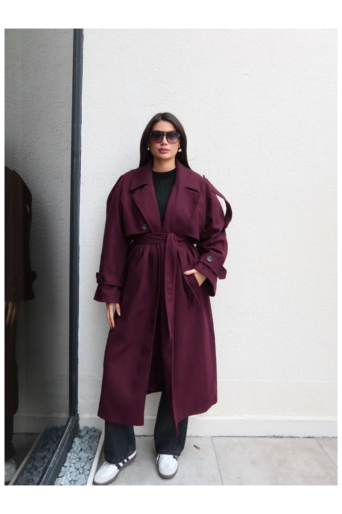 Süet Detay Kemerli Balıksırtı Kaban Süet Detay Kemerli Balıksırtı Kaban EH-6209 L