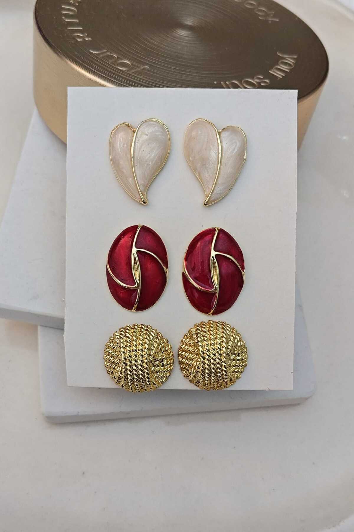 3 Çift Kalp Çiçek Fiyonk Kombin Gold Kadın Küpe 3 Çift Kalp Çiçek Fiyonk Kombin Gold Kadın Küpe kyola10270 تک سایز