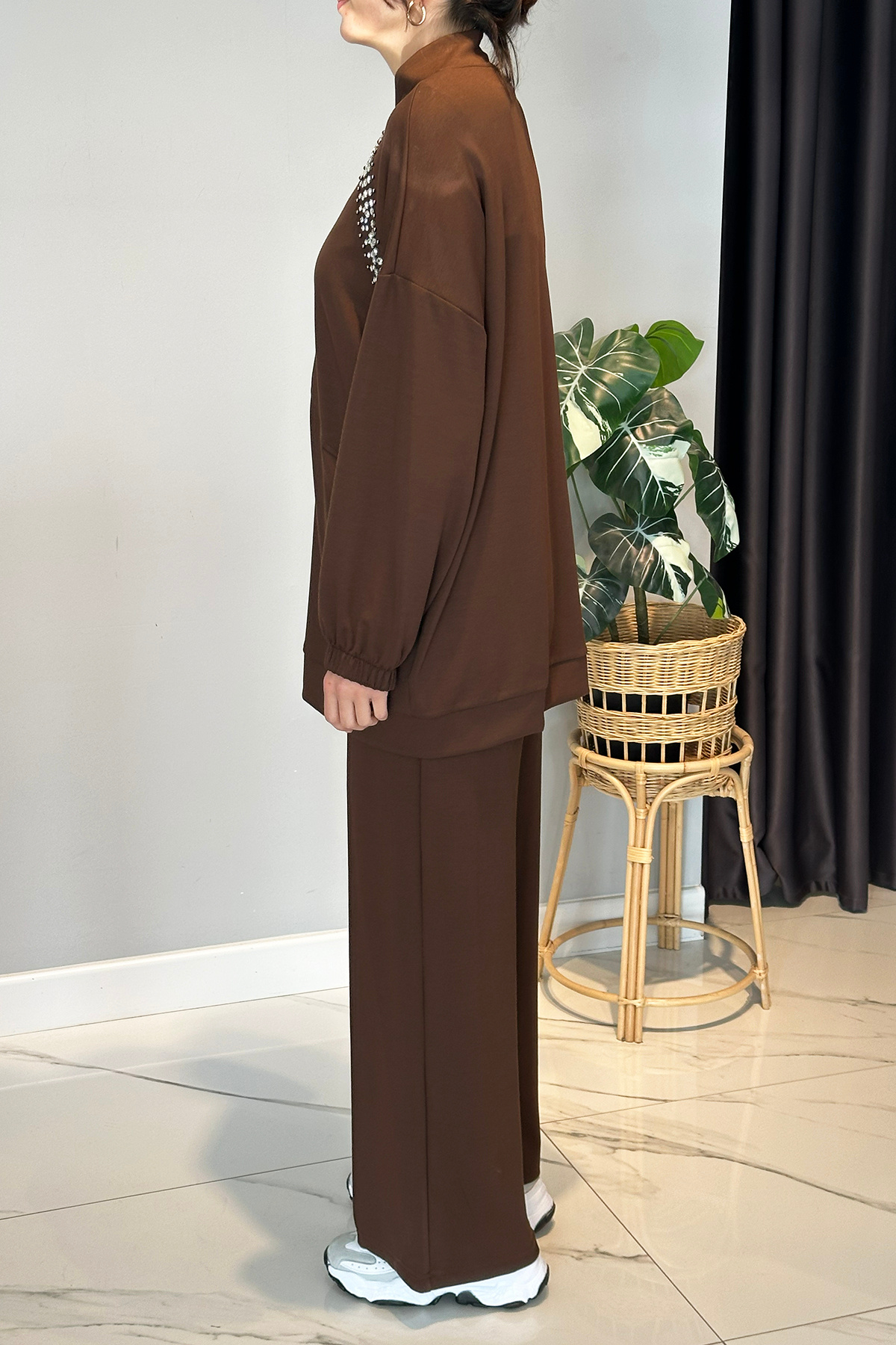 Önü Taş Detay Penye Takım 2015 Kahverengi Önü Taş Detay Penye Takım 2015 Kahverengi EYL-TKM-2015 2