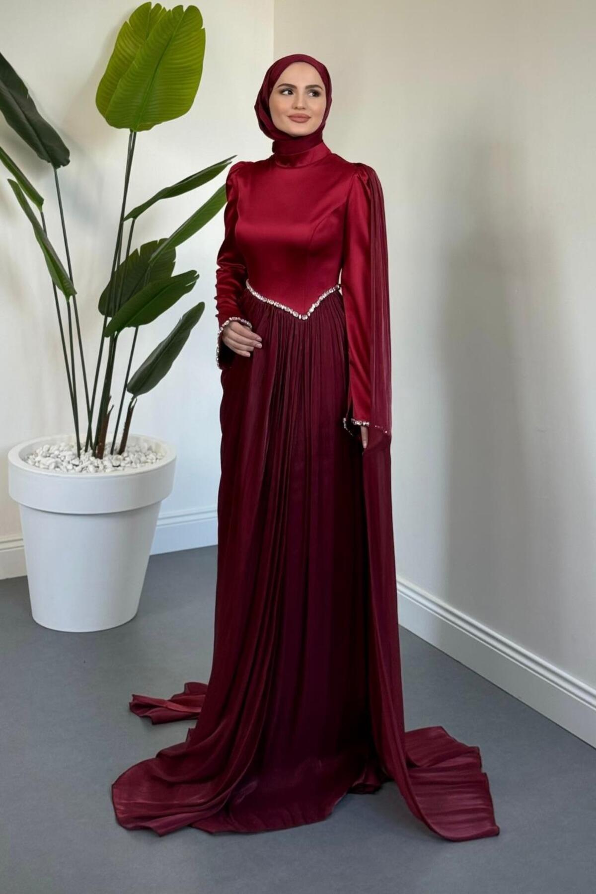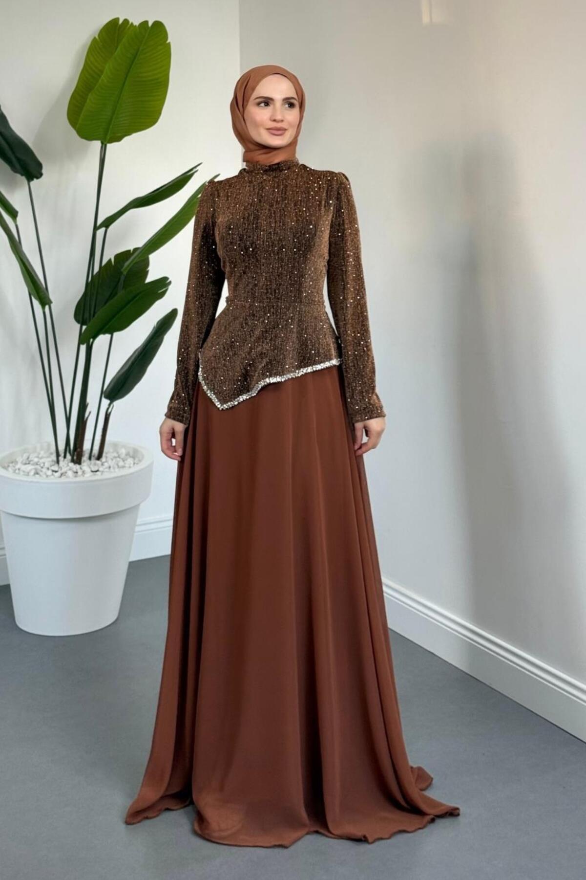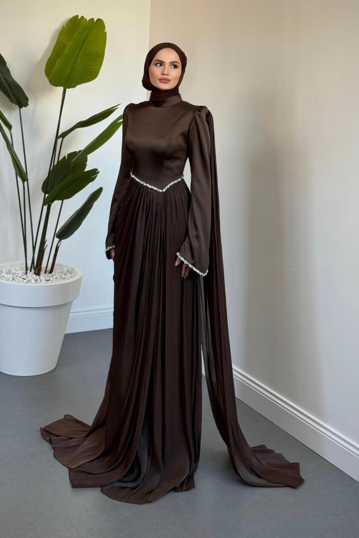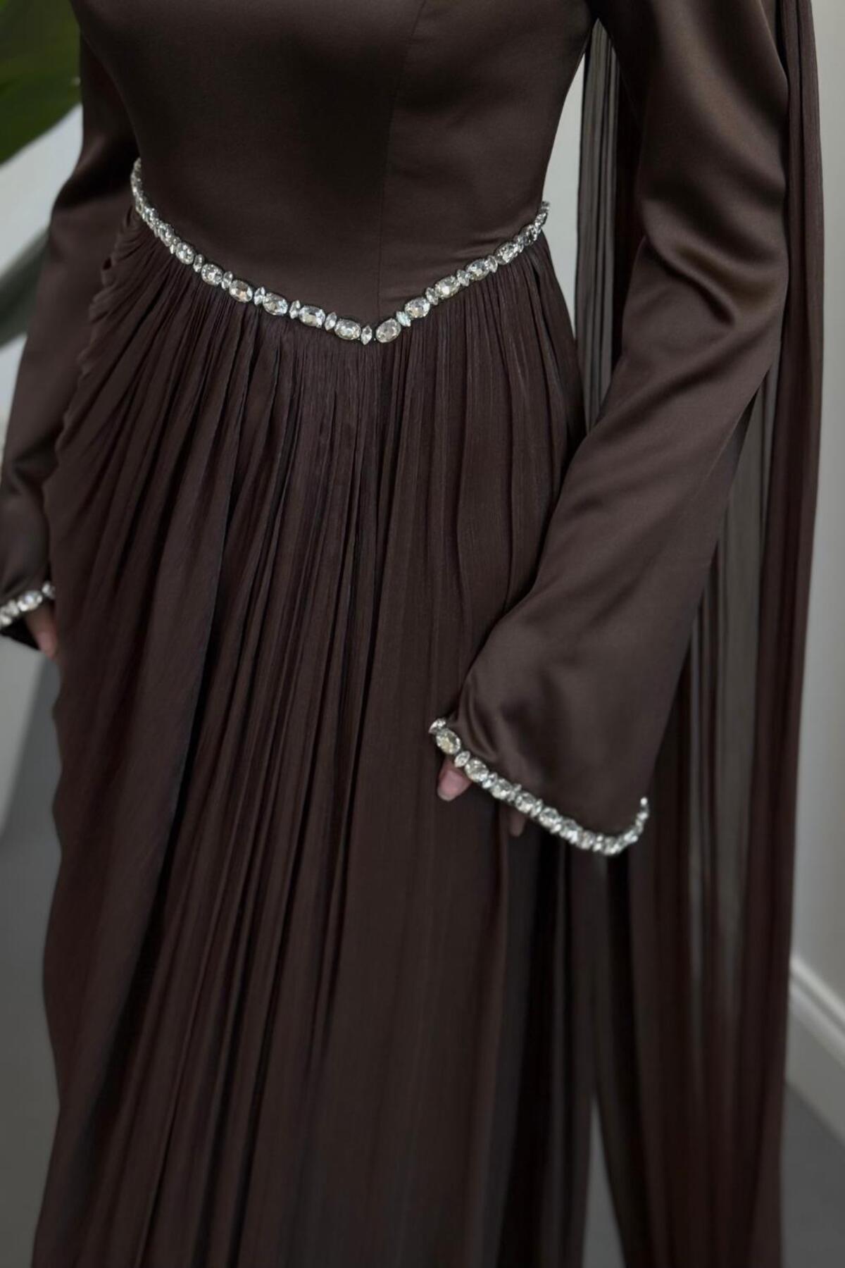 Nuvell Beli Ve Kol Ucu Taşlı Abiye Kahverengi Nuvell Beli Ve Kol Ucu Taşlı Abiye Kahverengi 8037 46