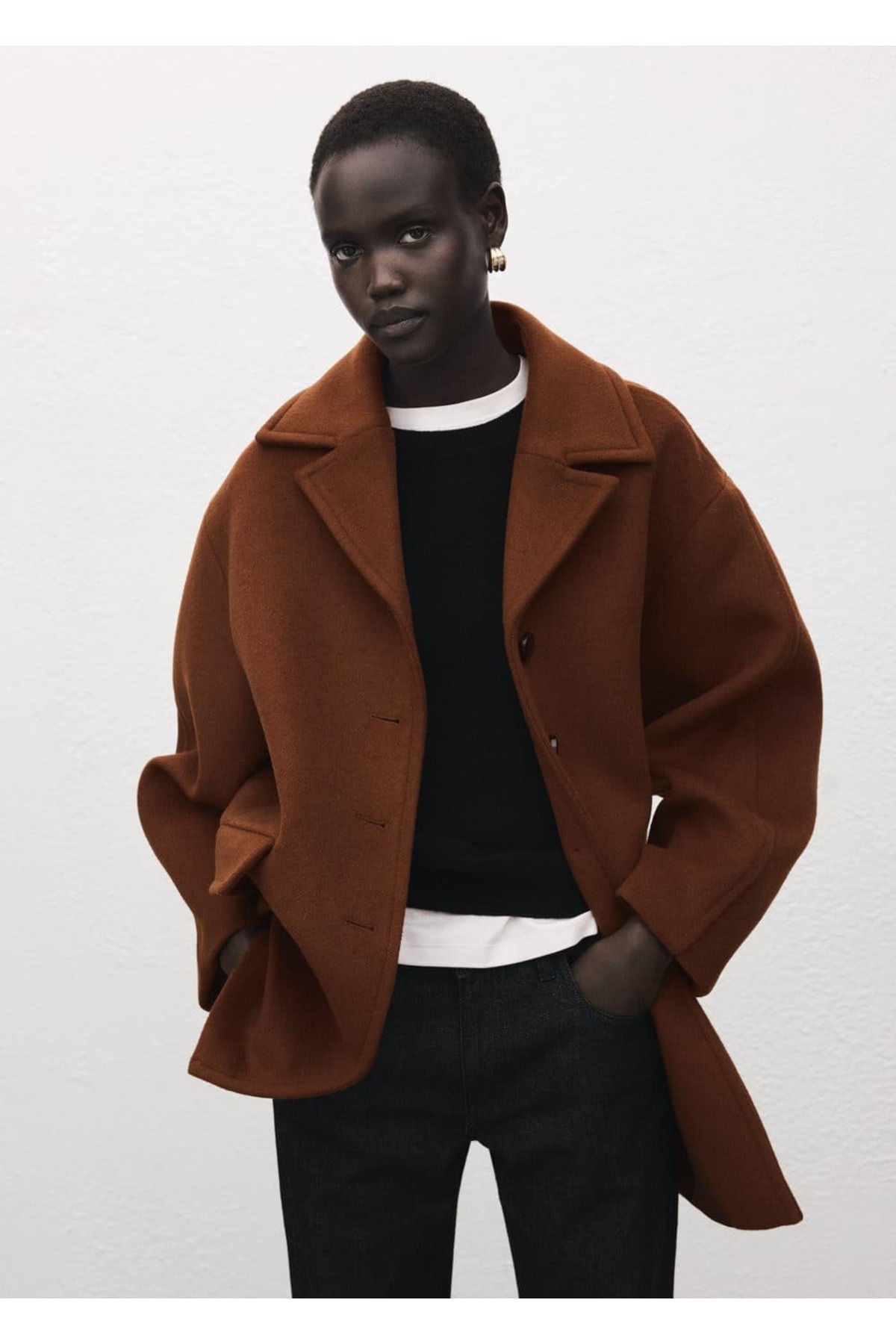Yün karışımlı düğmeli palto Yün karışımlı düğmeli palto 27061259 2XL