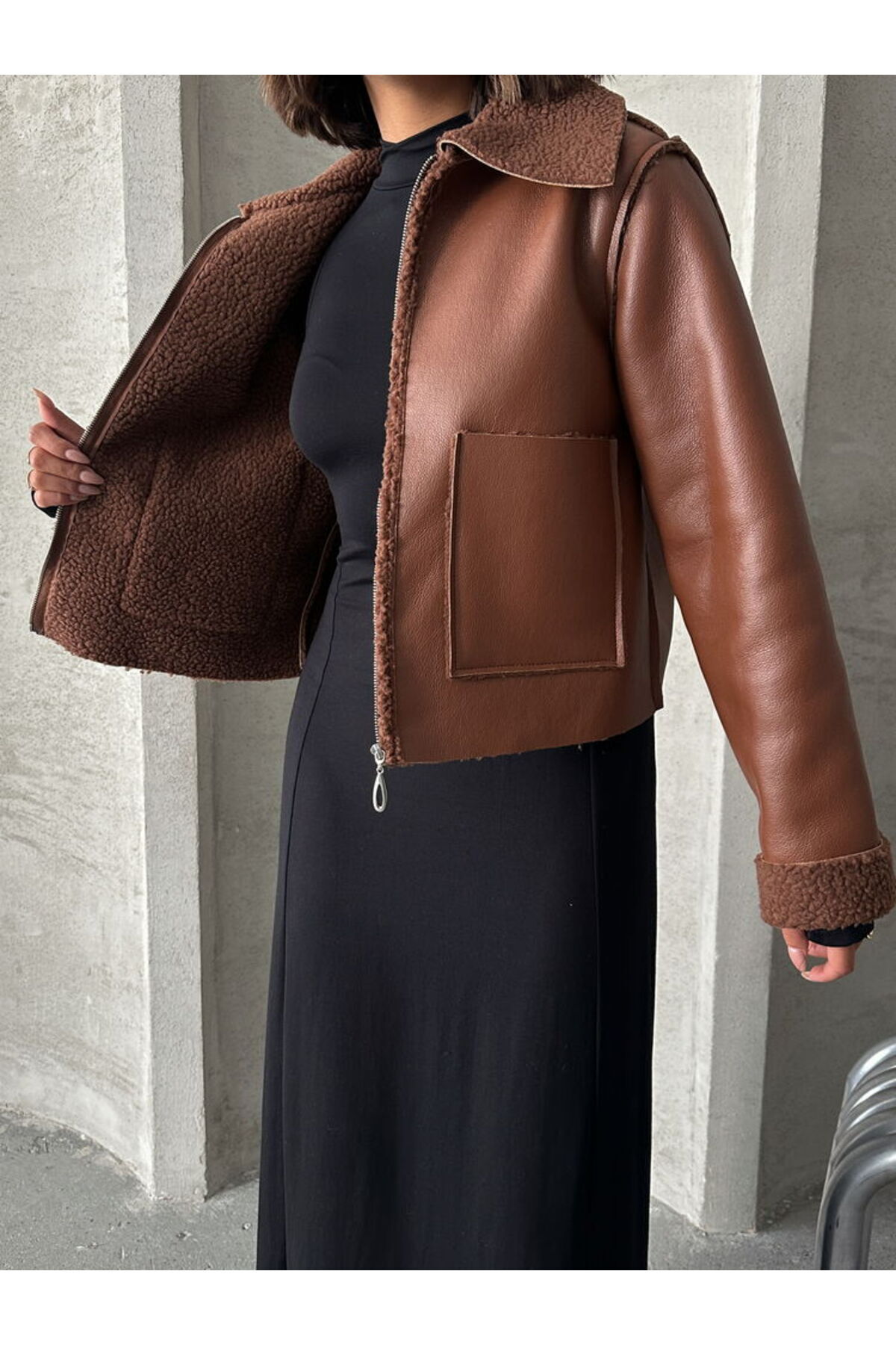 Kürklü Suni Deri Kısa Mont Kürklü Suni Deri Kısa Mont 119 26K1511 L