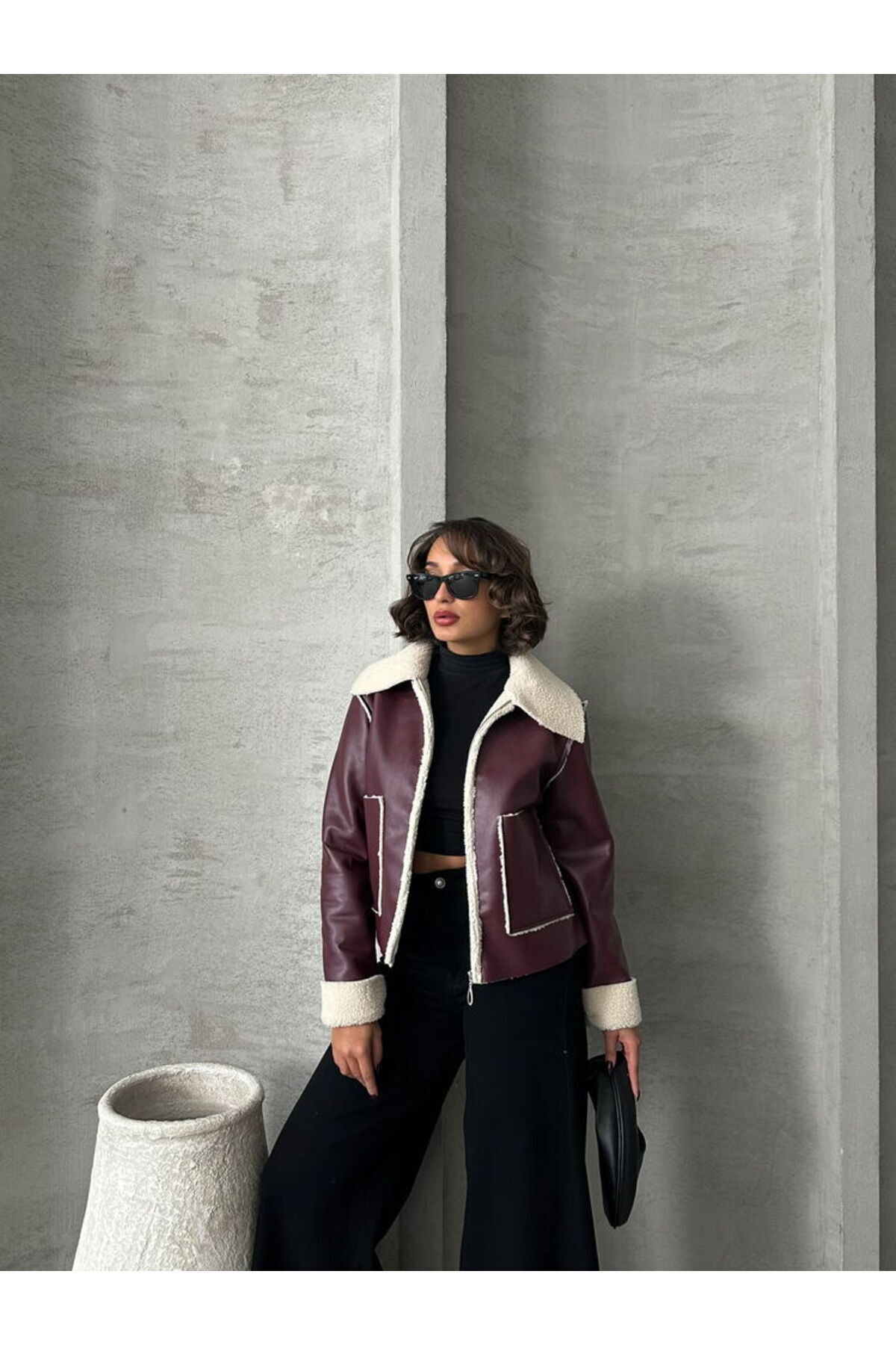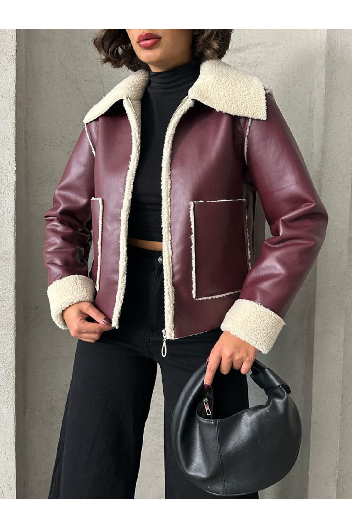 Kürklü Suni Deri Kısa Mont Kürklü Suni Deri Kısa Mont 119 26K1511 L