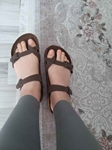 Kadın Kahve Rengi Nubuk Deri Çapraz Parmak Arası Terlik Kadın Kahve Rengi Nubuk Deri Çapraz Parmak Arası Terlik iso5 42