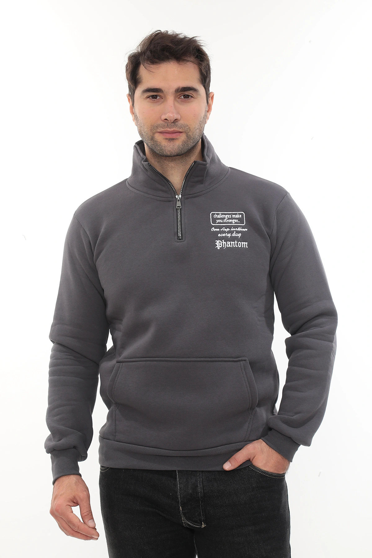 Erkek Açık Gri Standart Fit Normal Kesim Içi Polarlı Yarım Fermuarlı Dik Bato Yaka Pamuklu Sweatshir Erkek Açık Gri Standart Fit Normal Kesim Içi Polarlı Yarım Fermuarlı Dik Bato Yaka Pamuklu Sweatshir ERKEK-DİK-BATO-YAKA-YARIM-FERMUAR 2XL