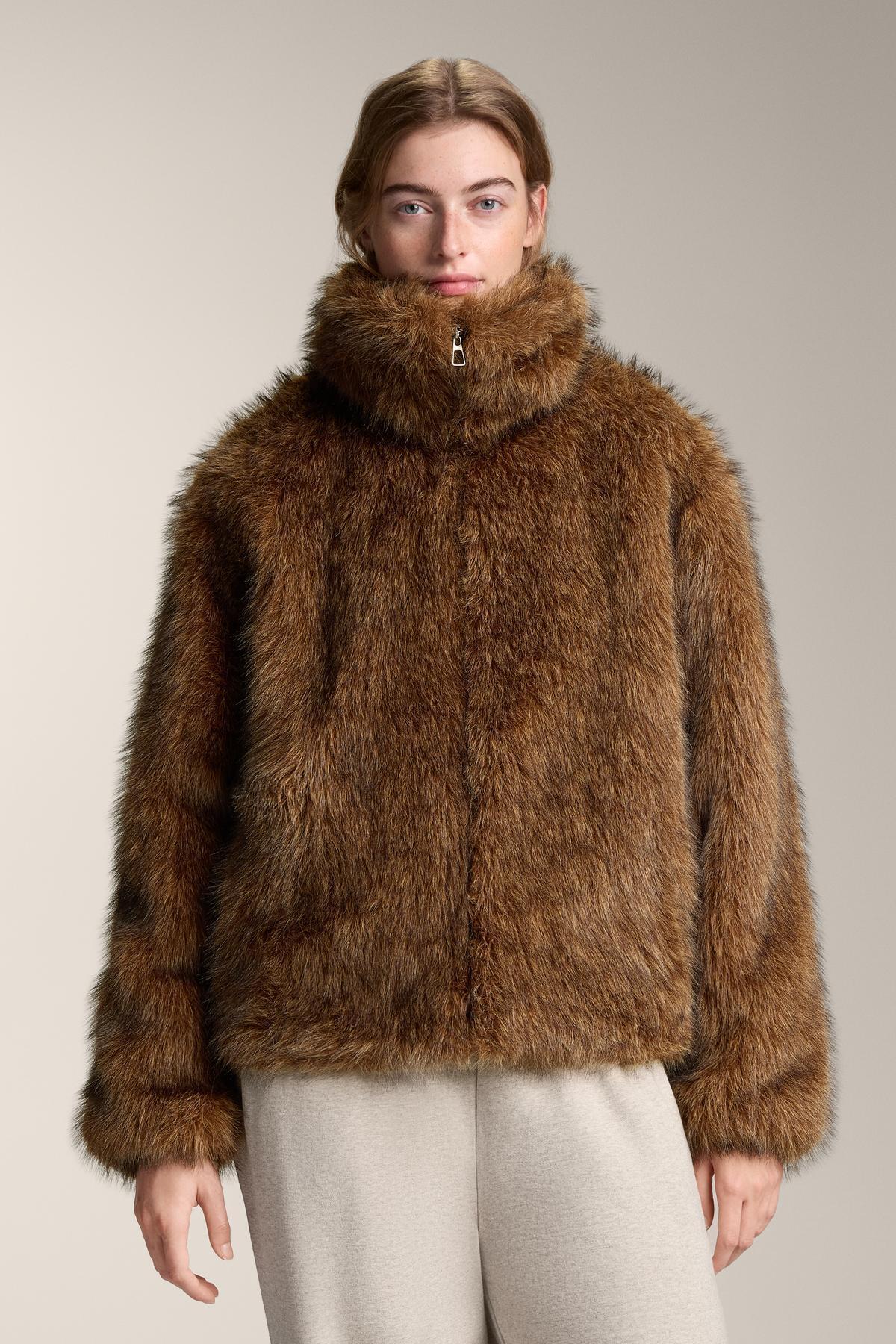 Tüylü görünümlü kapüşonlu ceket Tüylü görünümlü kapüşonlu ceket 33896945 L
