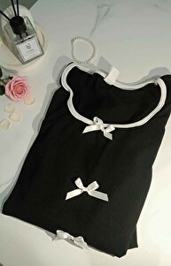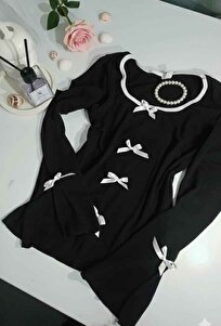 Kadın Siyah Yakası Beyaz Kurdeleli Uzun Kollu Body Kadın Siyah Yakası Beyaz Kurdeleli Uzun Kollu Body kışkaşkorse L