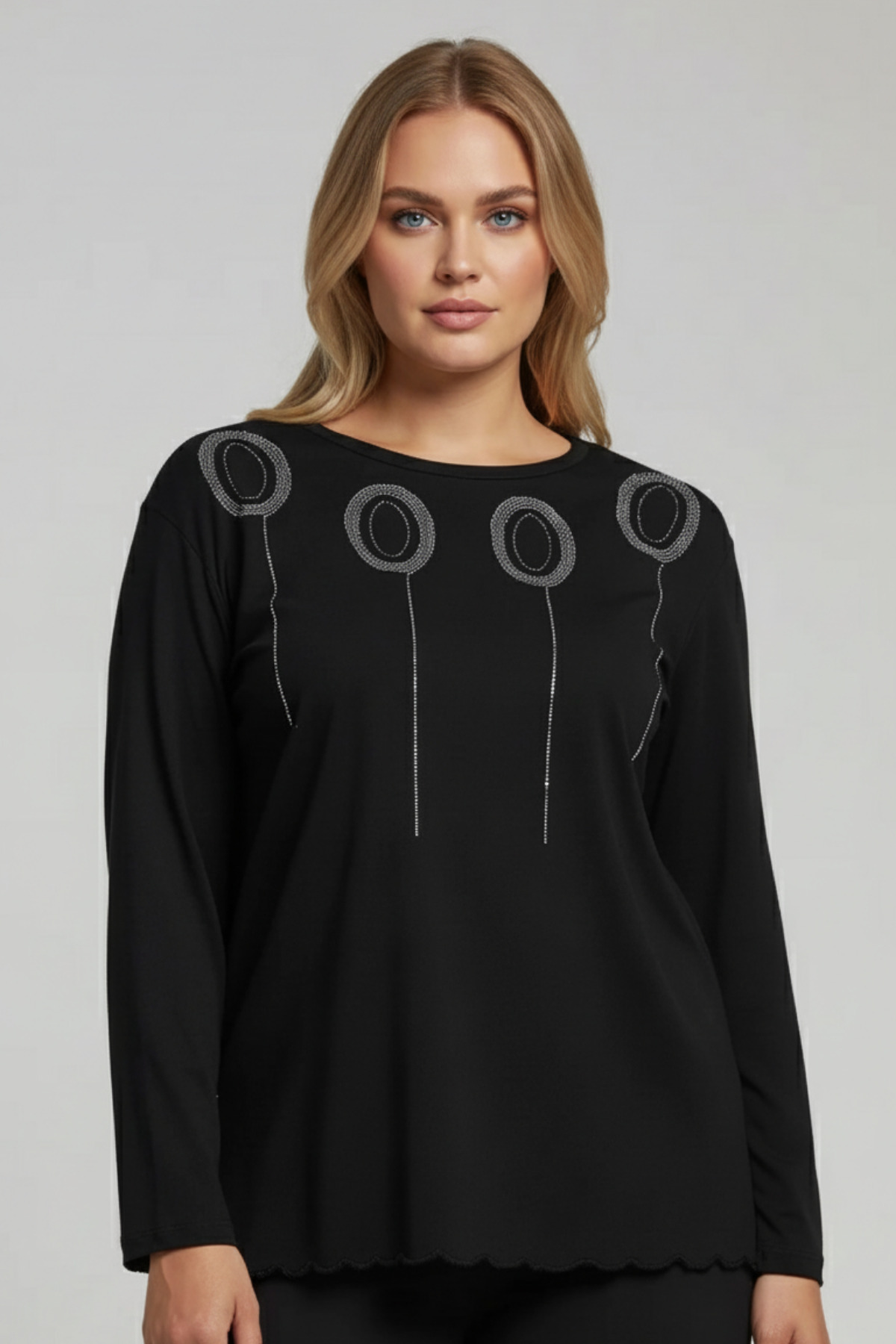 Kadın Büyük Beden Bisiklet Yaka Uzun Kollu Taş Detaylı Esnek Bluz Kadın Büyük Beden Bisiklet Yaka Uzun Kollu Taş Detaylı Esnek Bluz ZKP83HNL 6XL
