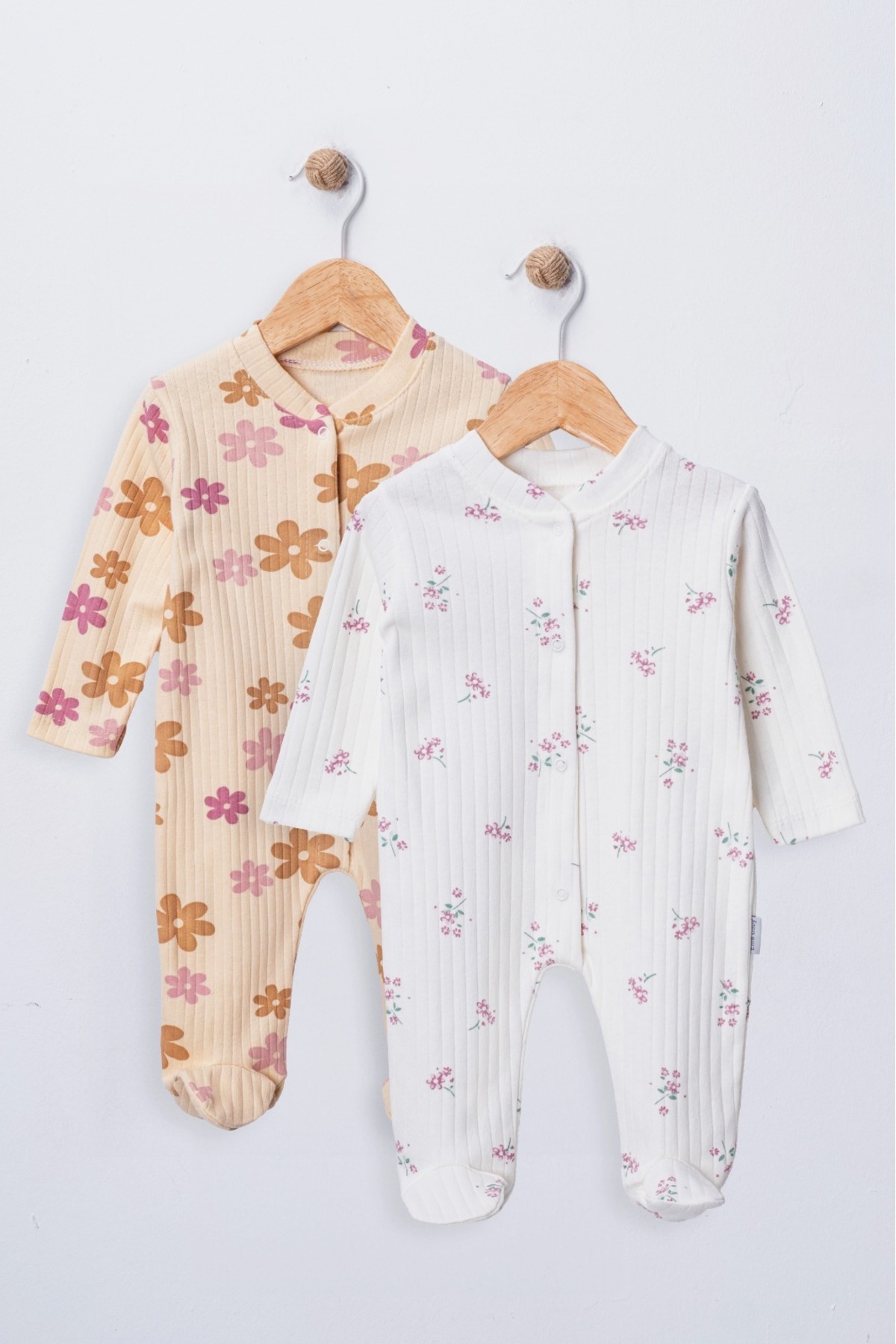 Kız Bebek 2 Adet %100 Pamuklu Patikli Tulum Seti Kız Bebek 2 Adet %100 Pamuklu Patikli Tulum Seti 17112025-2 3-6 AY