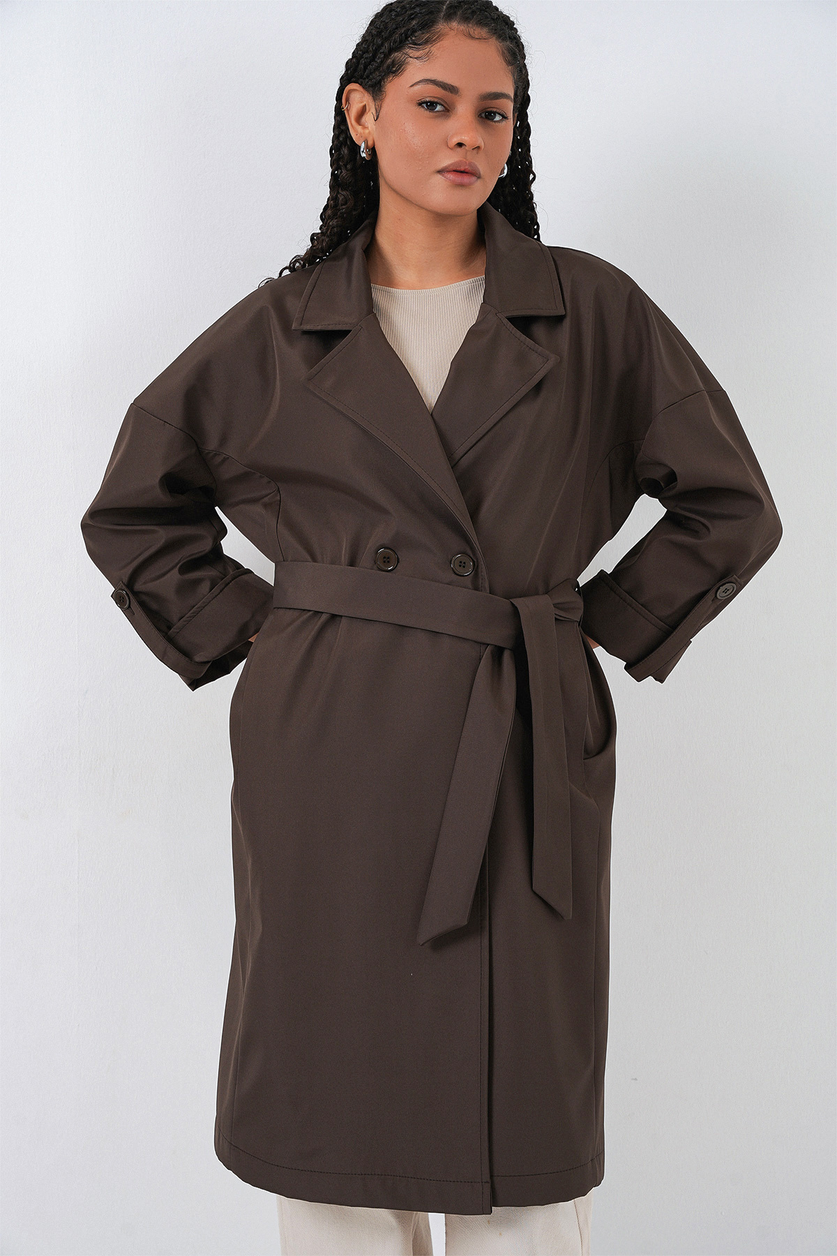 9104 Kruvaze Yaka Astarlı Trençkot - A.Kahve 9104 Kruvaze Yaka Astarlı Trençkot - A.Kahve 9104BGD19 44