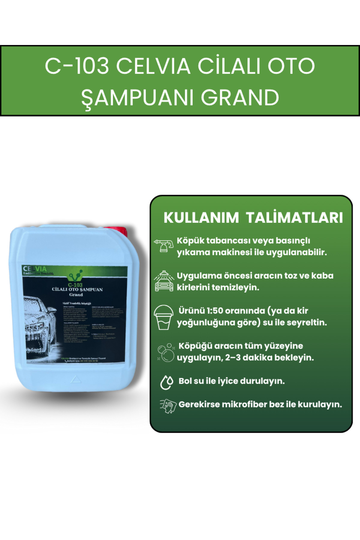 Oto Şampuan %70 Cilalı Kostiksiz C-103 Grand 5 Kg Normal yıkama Veya Köpük Makineleri için uyumlu Oto Şampuan %70 Cilalı Kostiksiz C-103 Grand 5 Kg Normal yıkama Veya Köpük Makineleri için uyumlu تک سایز