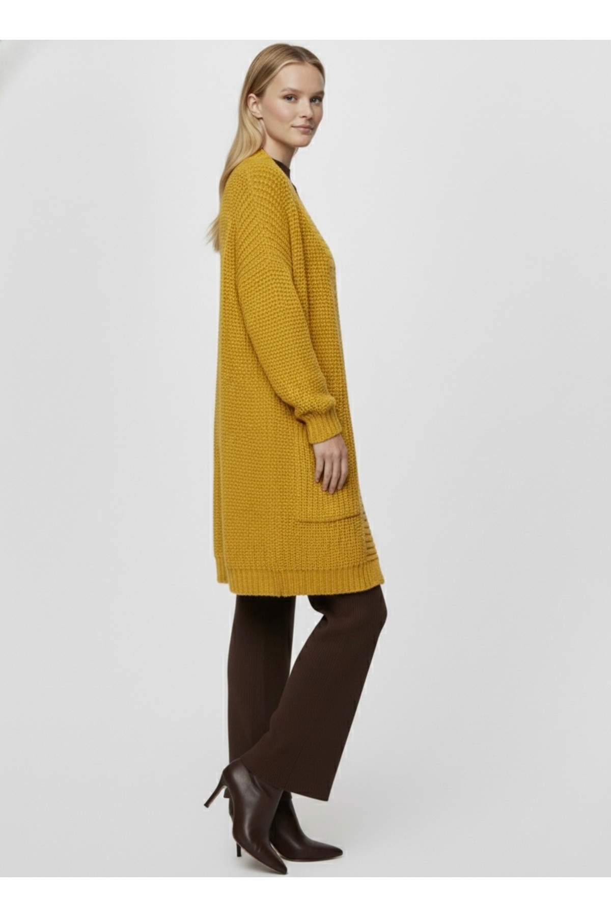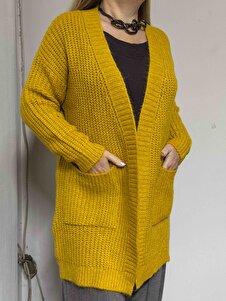 Kadın Uzun Oversize Kalın Örgü Triko Hırka – Cepli – Hardal Kadın Uzun Oversize Kalın Örgü Triko Hırka – Cepli – Hardal 211044 4XL