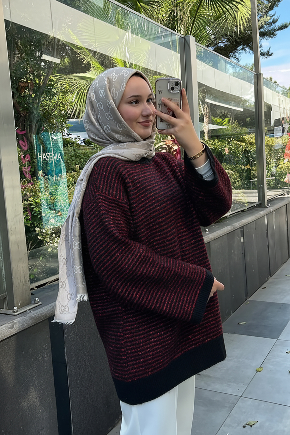 51172- Şık Rahat Simli Kadın Triko Uzun Kazak 51172- Şık Rahat Simli Kadın Triko Uzun Kazak L/XL